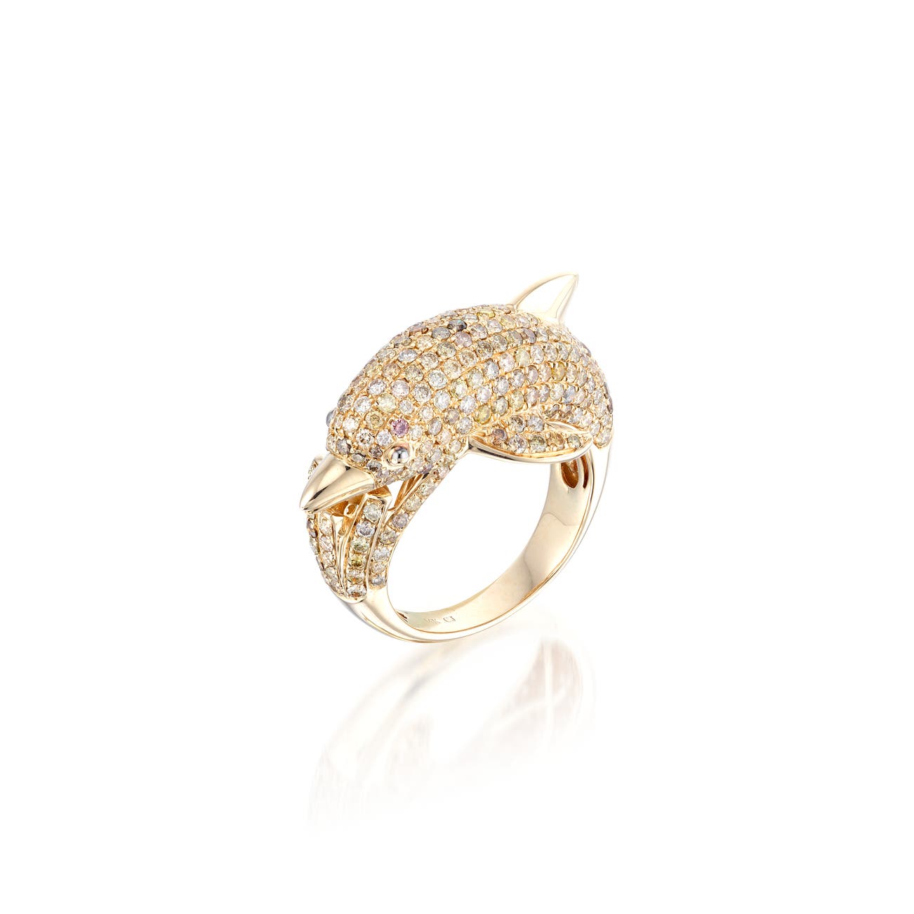 Designed as a dolphin, set with brilliant-cut diamonds of various tints,