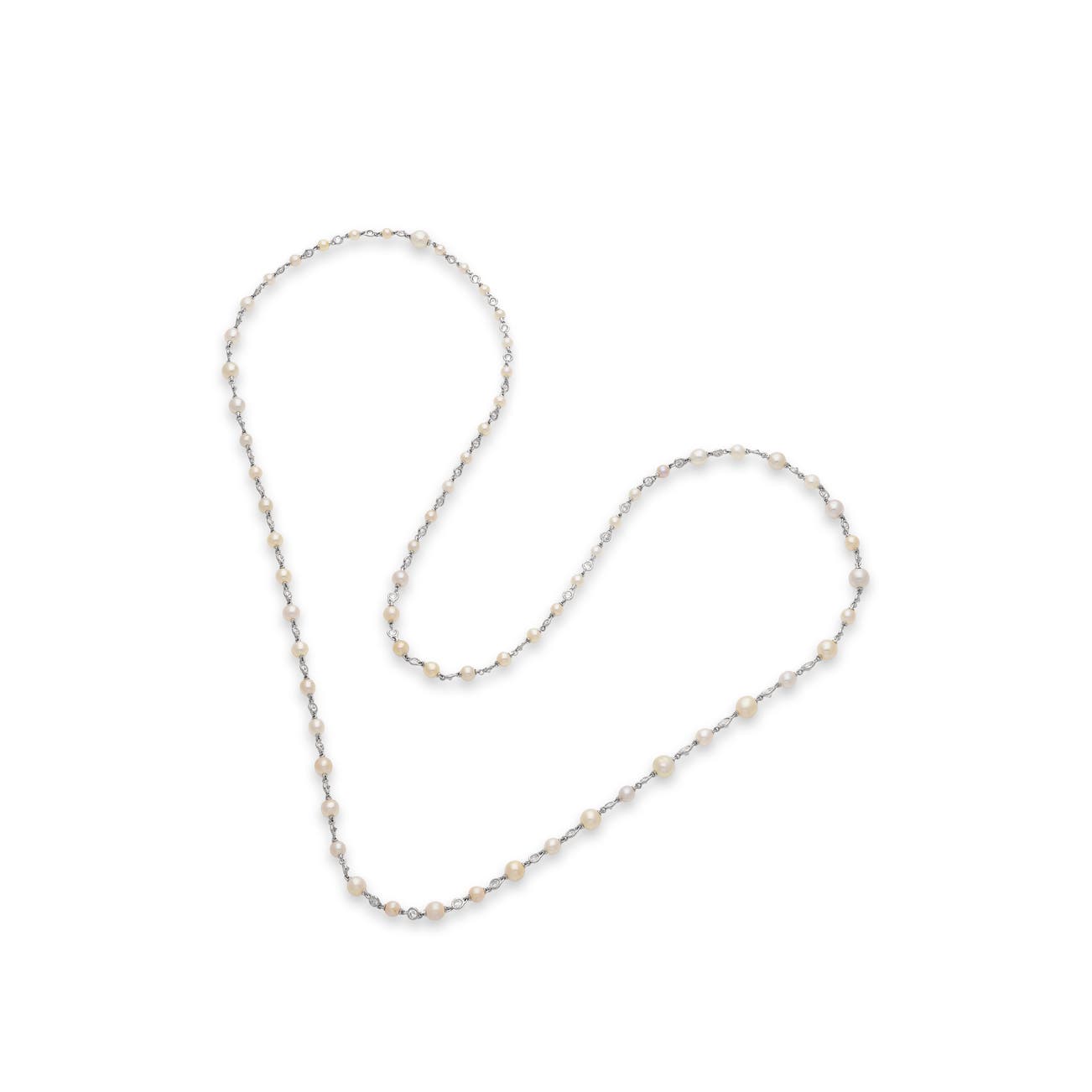 Composed of graduating natural pearls, measuring from approximately 3.60 to 7.00mm in diameter, alternating with circular-cut diamonds, length approximately 900mm.
