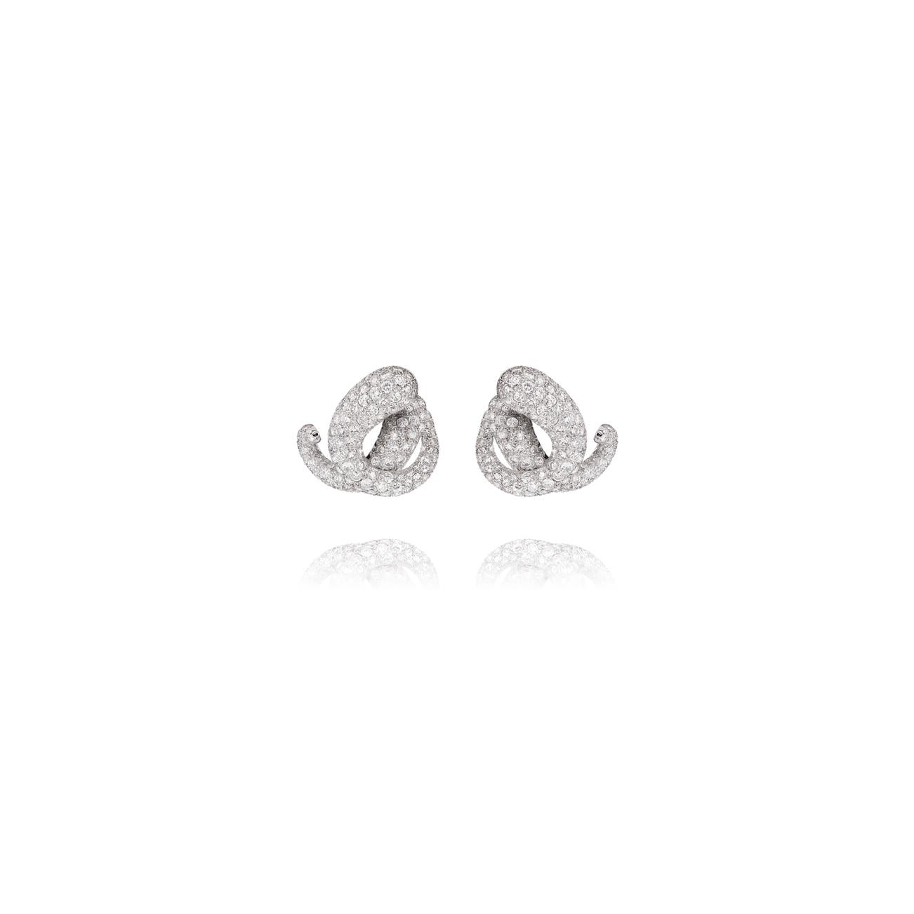 Each of scroll design, set throughout with brilliant- and single-cut diamonds, measuring approximately 30 x 30mm, hinged-back fittings.