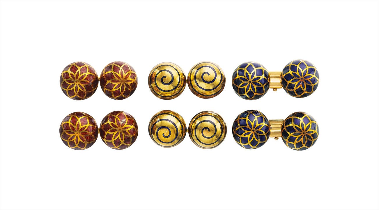 A Set of Three Enamel and Gold Cufflinks
