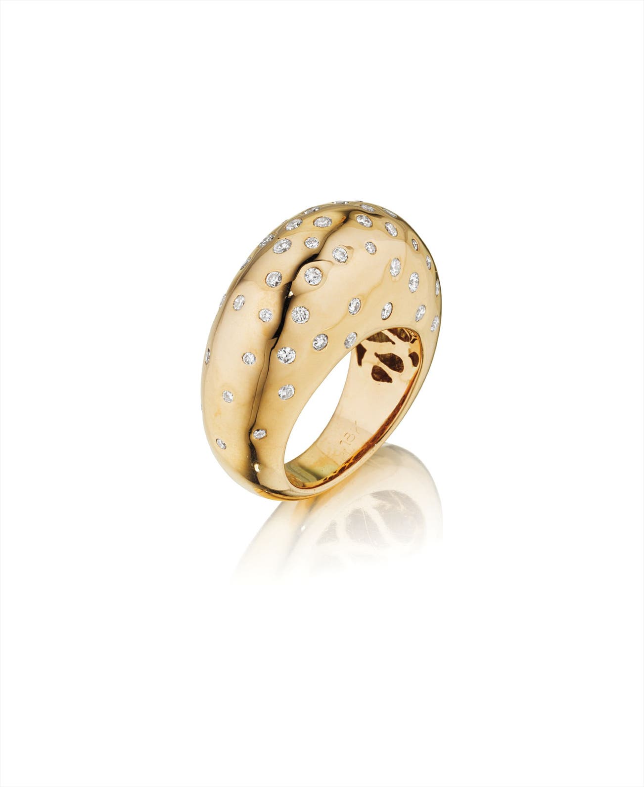 Designed as a bombé dome ring, accented by circular-cut diamonds, mounted in 18K rose gold, size 5 1/4.