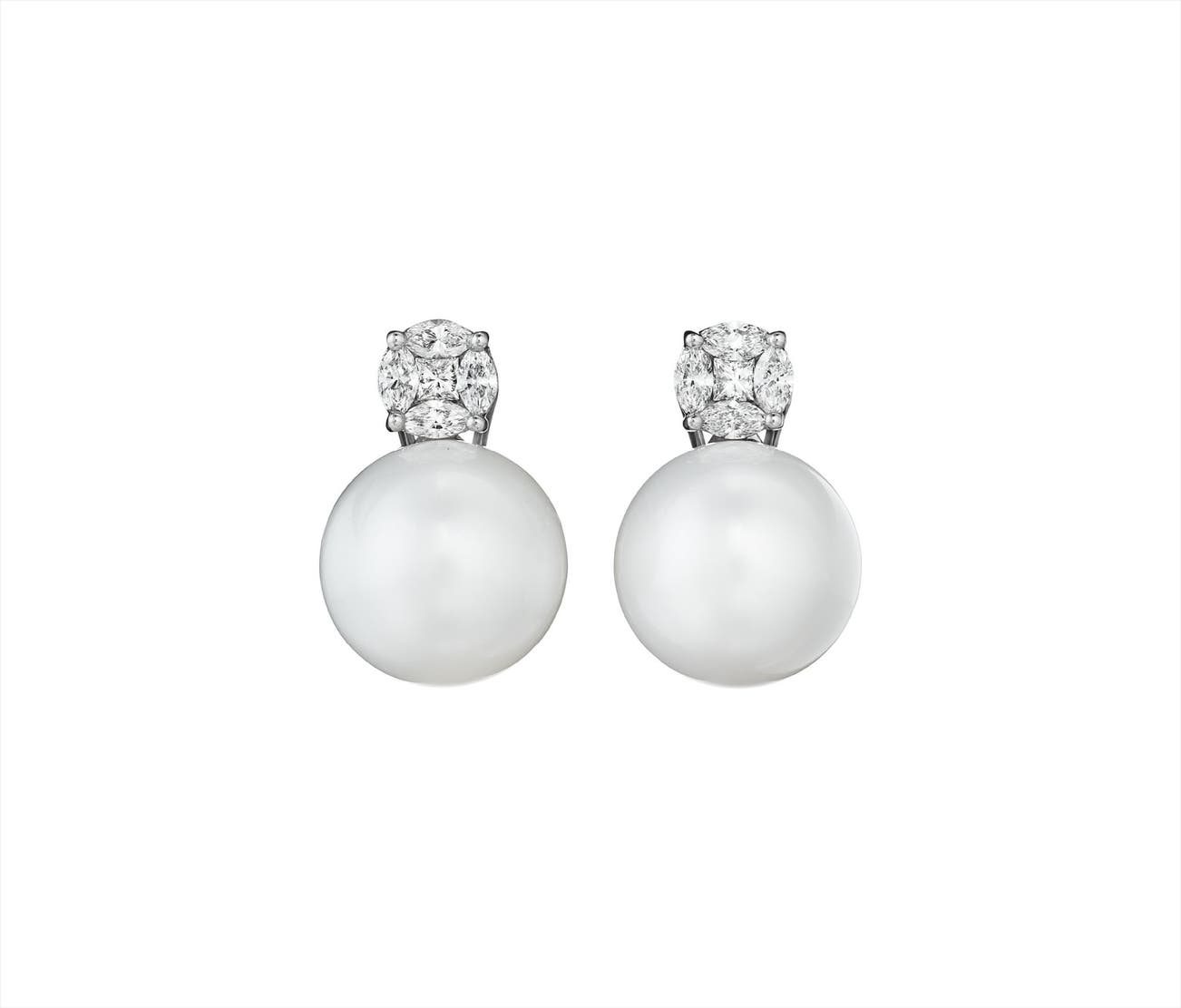 A Pair of South Sea Cultured Pearl and Diamond Earclips