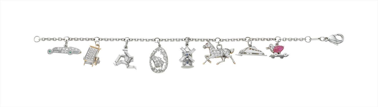 An Art Deco Diamond and Gem-Set Charm Bracelet