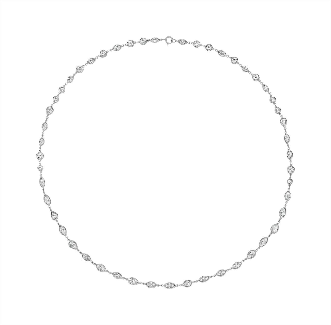Composed of a series of collet-set pear-shaped, circular and marquise-cut diamonds, mounted in platinum, length 18 1/2 inches.