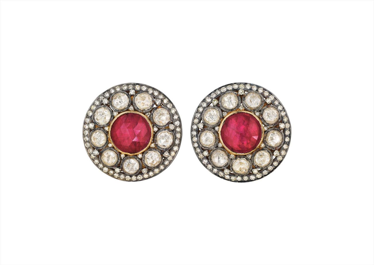 A Pair of Ruby and Diamond Earclips