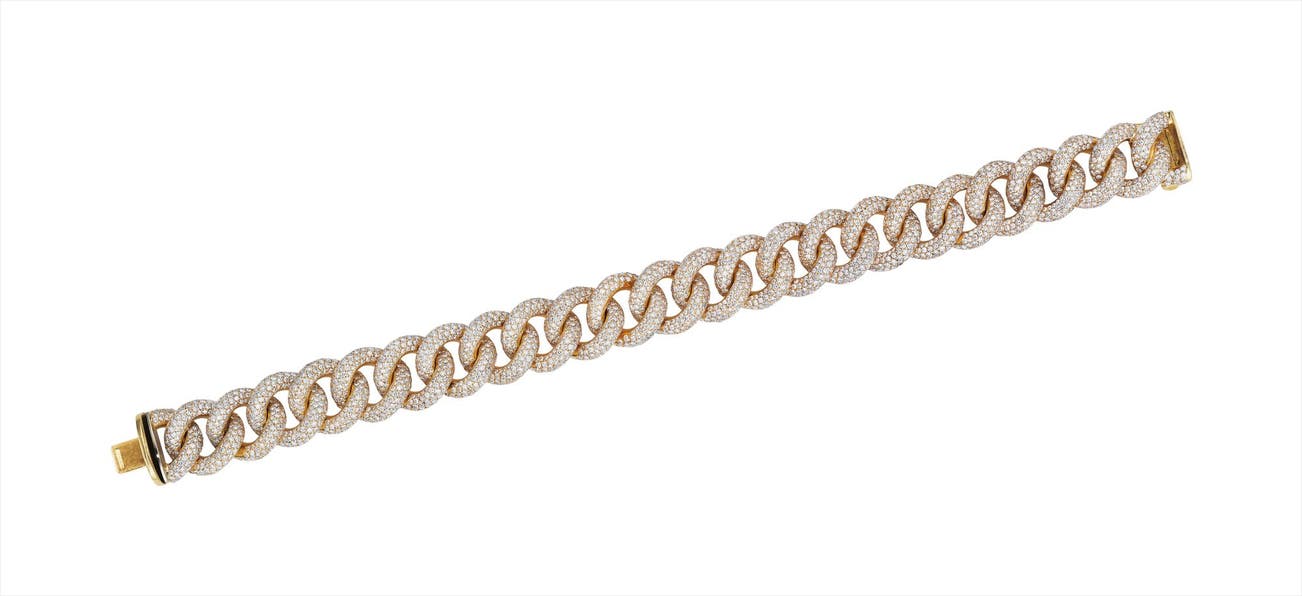 Designed as a curb link bracelet, enhanced by circular-cut diamonds, mounted in 18K yellow gold, length 7 1/2 inches.