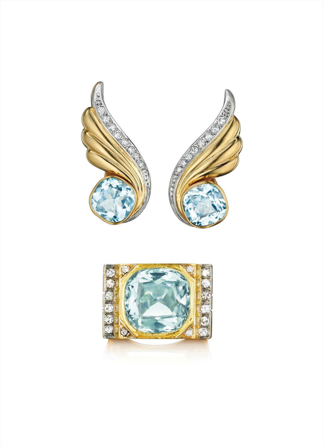 A Gold, Aquamarine, and Diamond Suite