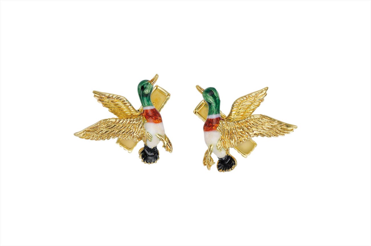 A Pair of Gold and Enamel 'Mallard Duck' Cufflinks