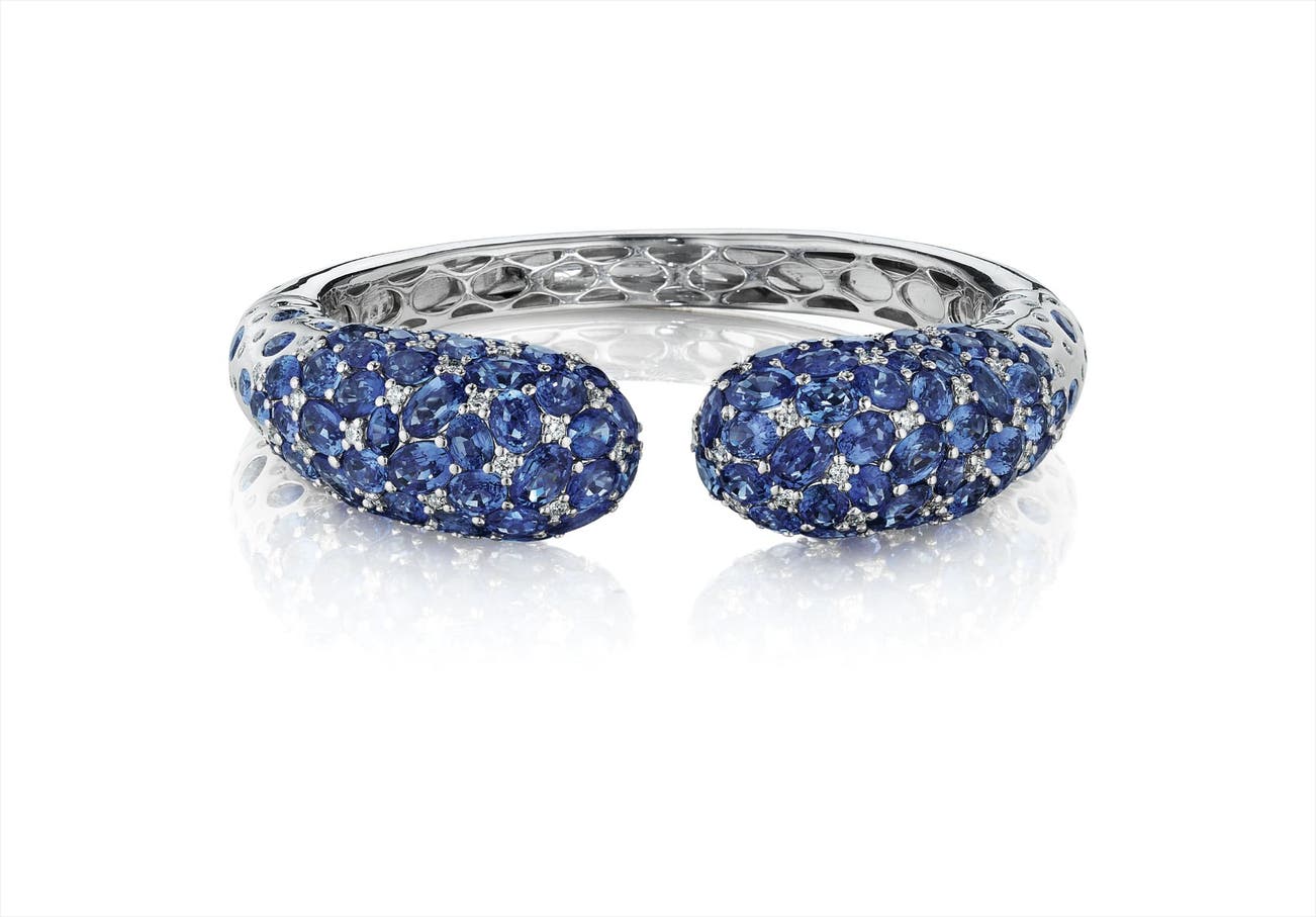 A Sapphire, Diamond, and Gold Cuff Bracelet