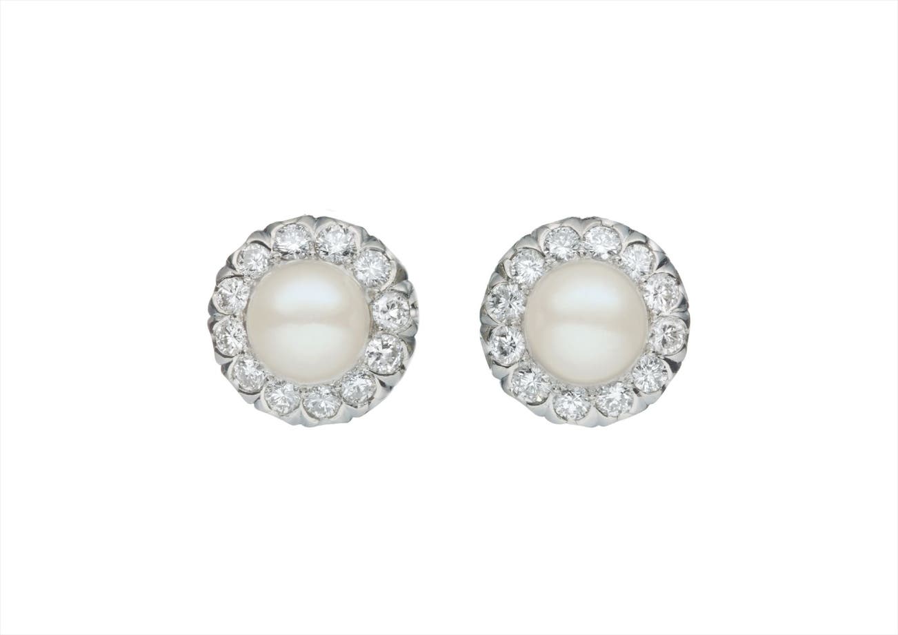 A Pair of Cultured Pearl and Diamond Earclips