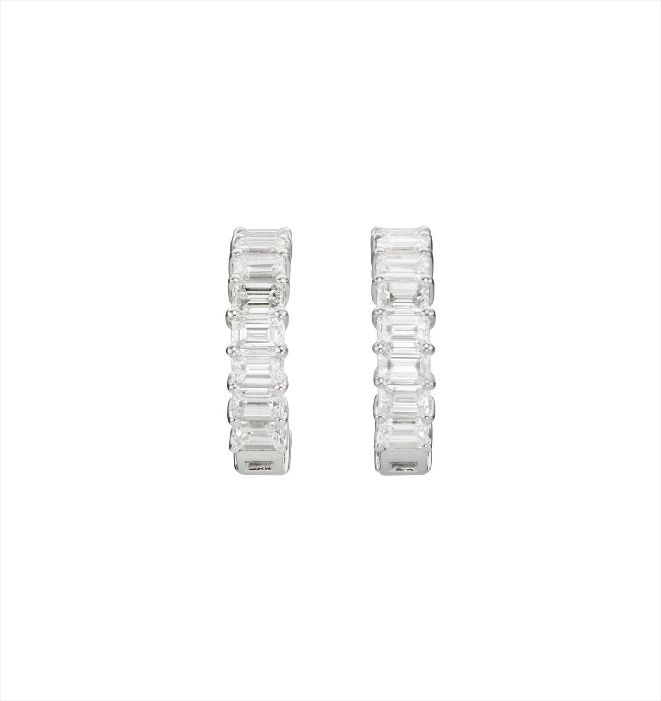 Each designed as a hoop, the front and interior back entirely set with rectangular-cut diamonds weighing approximately 6.25 carats in total, mounted in 18K white gold, length 7/8 inch.
