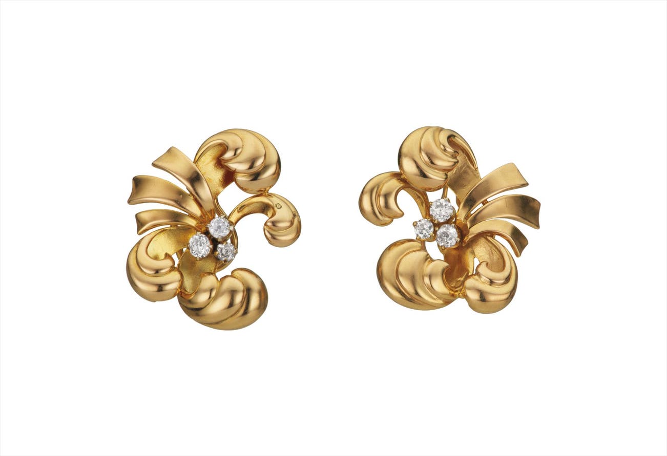 A Pair of Gold and Diamond Earclips