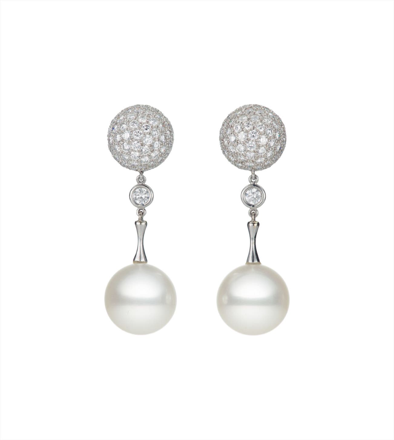 A Pair of South Sea Cultured Pearl and Diamond Ear Pendants