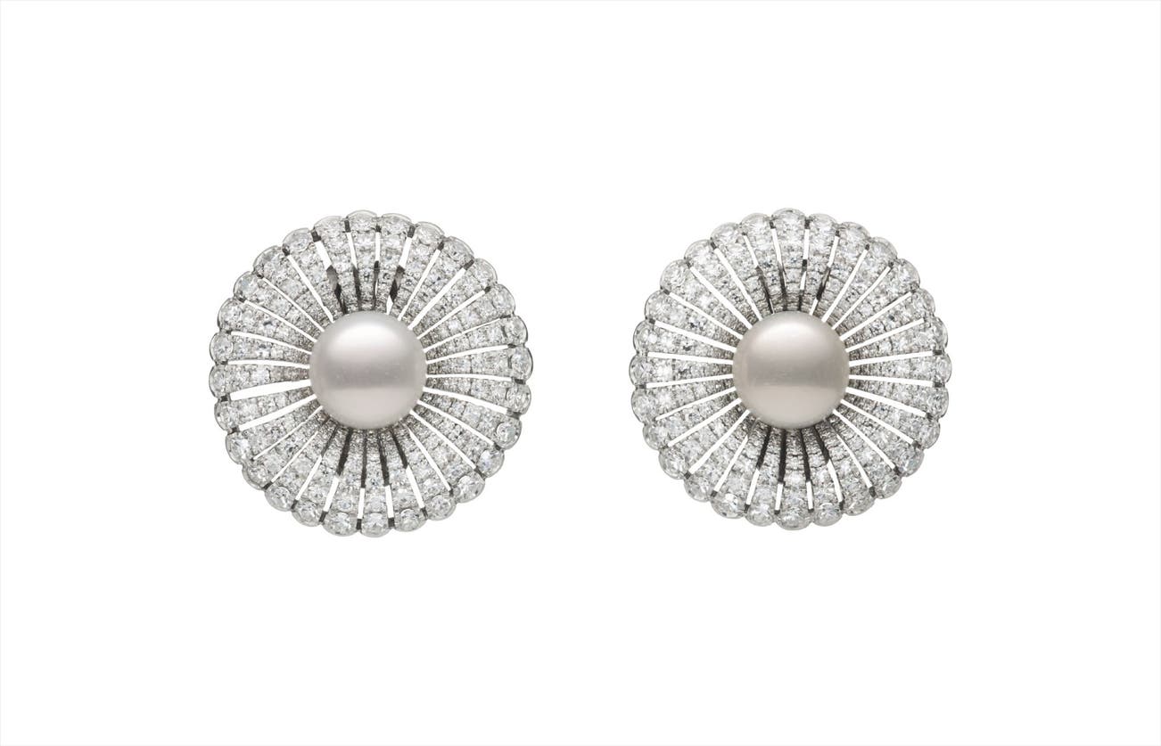 A Pair of Cultured Pearl Diamond and Earclips