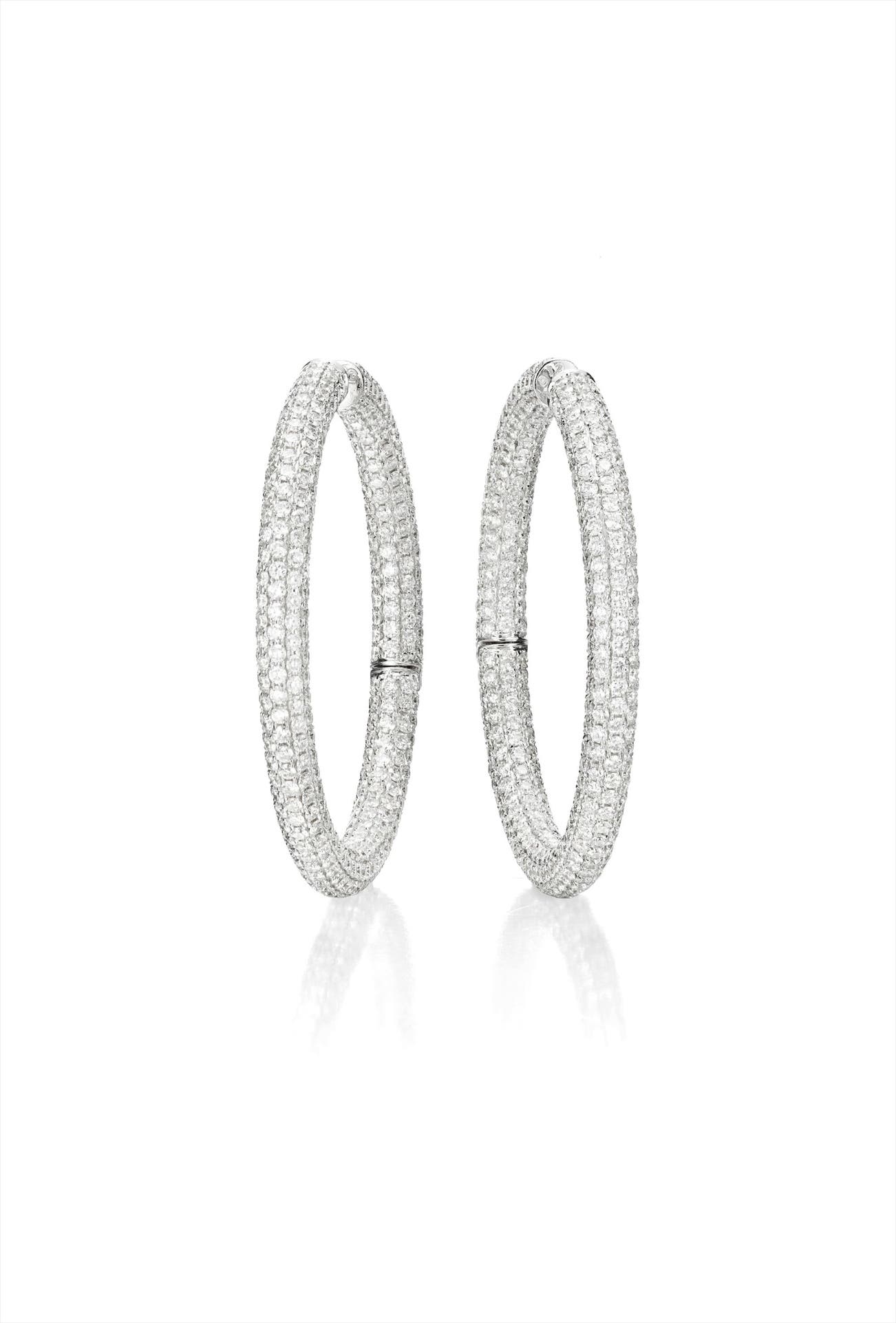 Each designed as a pavé-set diamond hoop weighing approximately 12.33 carats in total, mounted in 18K white gold, length 1 1/2 inches.
