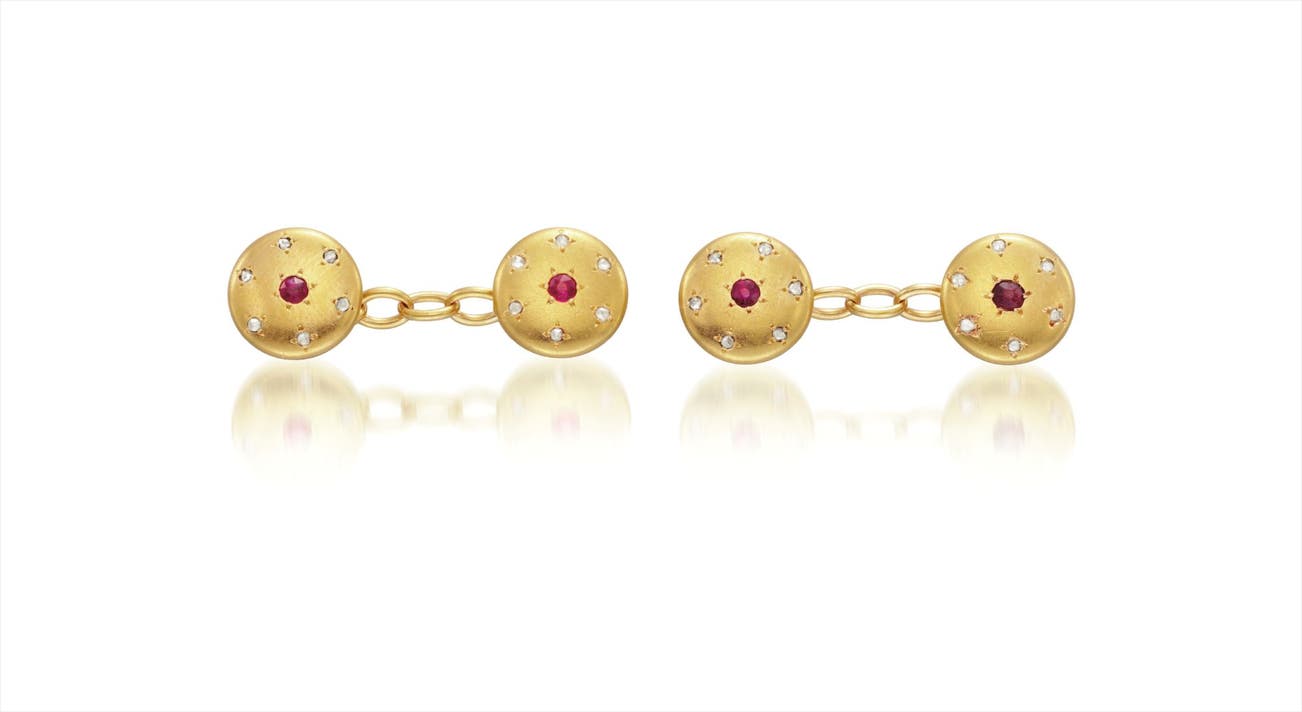 A Pair of Gold, Ruby, and Diamond Cufflinks