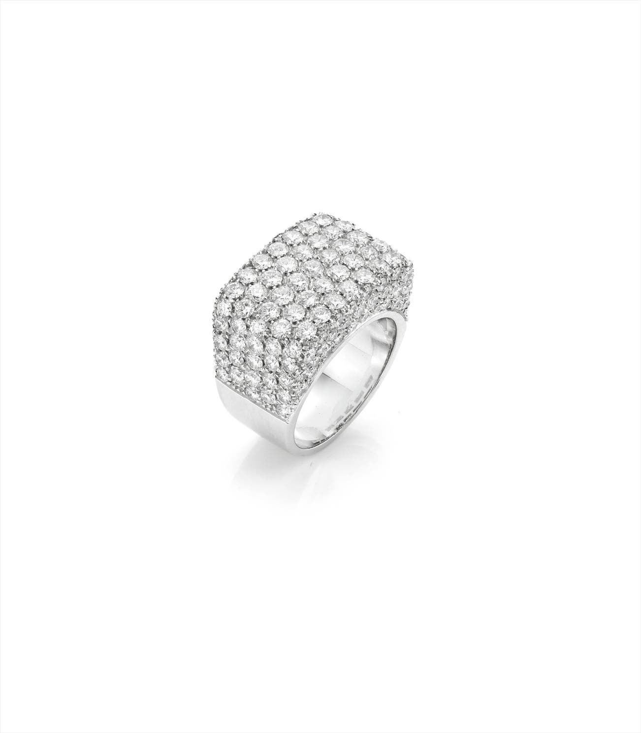The rectangular top enhanced by pavé-set diamonds, extending to all four sides, mounted in 18K white gold, size 6 1/2.