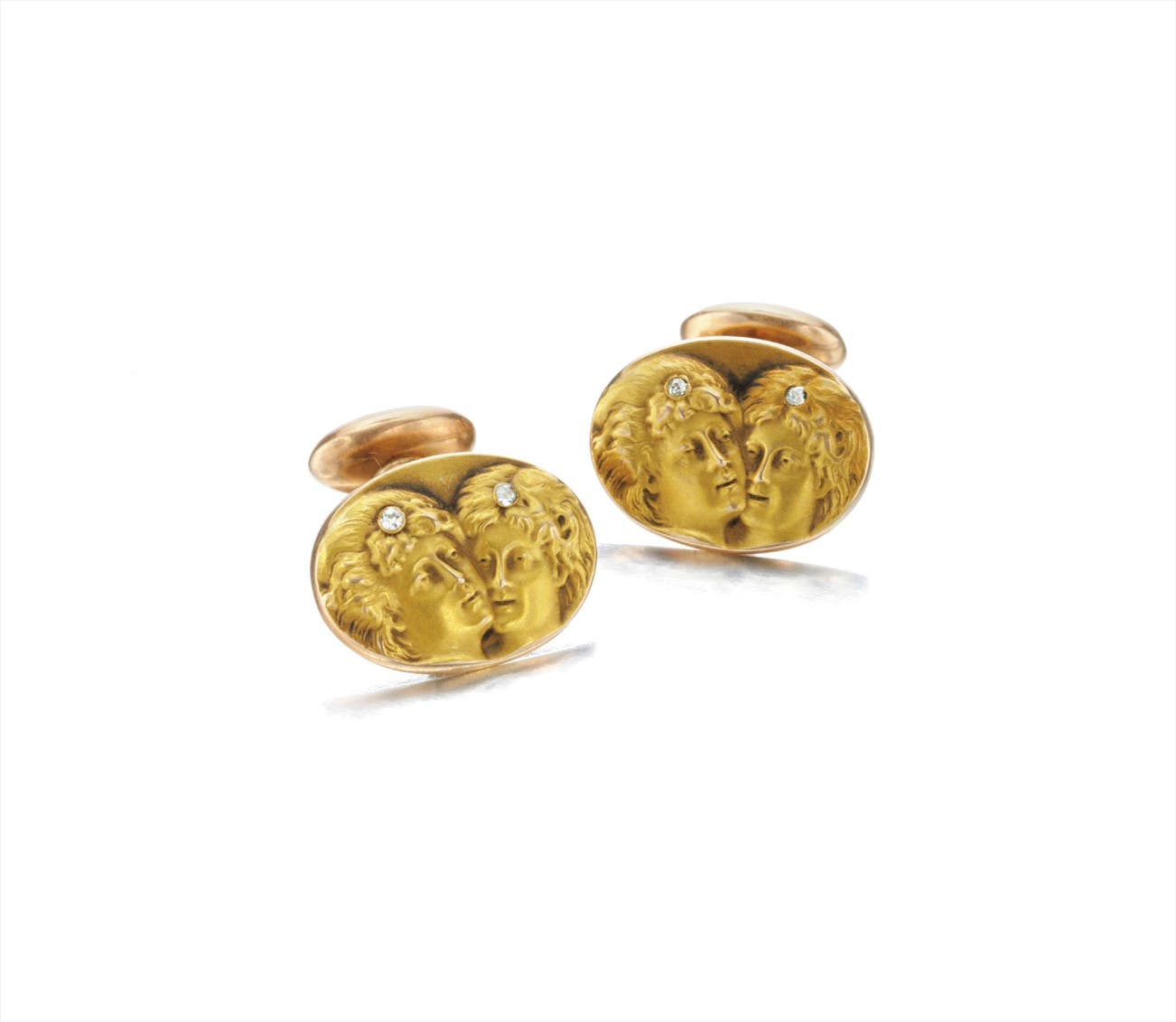 A Pair of Art Nouveau Gold and Diamond Cufflinks