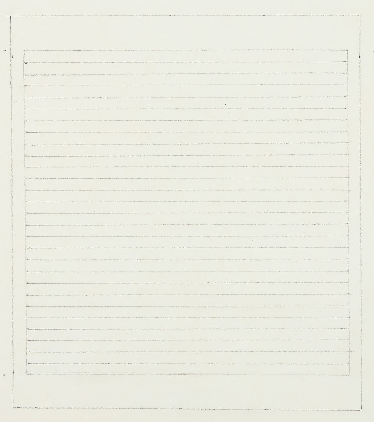"When I first made a grid I happened to be thinking of the innocence of trees and then this grid came into my mind and I thought it represented innocence, and I still do, and so I painted it and then I was satisfied. I thought, this is my vision." Agnes Martin