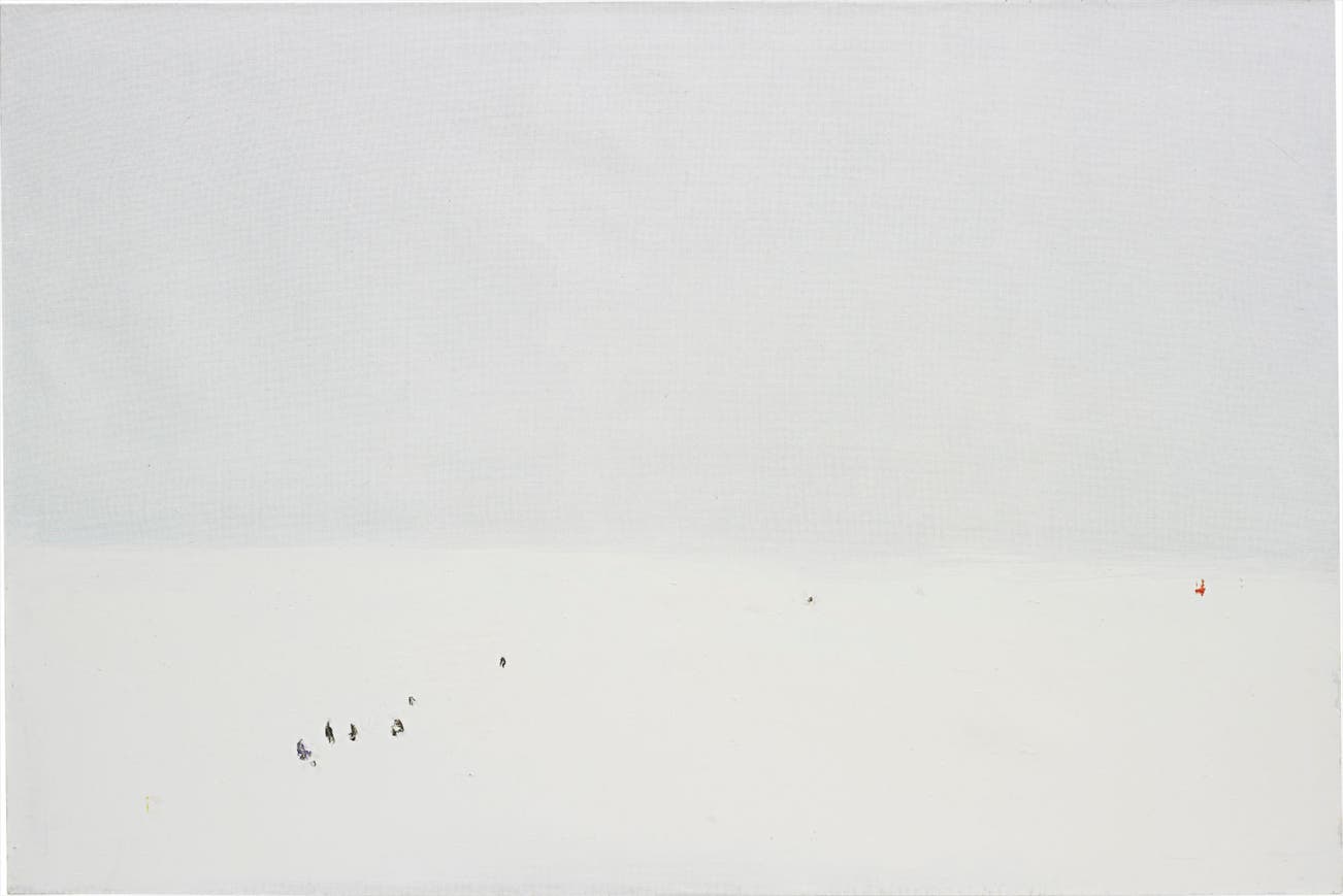 After years spent creating abstract works in the wake of the Soviet State in the early 1990s, Ukrainian artist Anatoliy Kryvolap chose to return to figurative depictions of the Ukrainian landscape. The present lot forms part of the artist’s “Ukrainian Motive” series, in which he reflects on the inherent symbolism in the barren, yet meditative, desert landscape of his homeland. Untitled balances a painterly spontaneity with a sophisticated minimalist touch, all the while conveying the lyricism of the Ukrainian landscape. This winter scene is both a personal exploration of the country’s newfound freedom as well as a probing look into memory and loss.