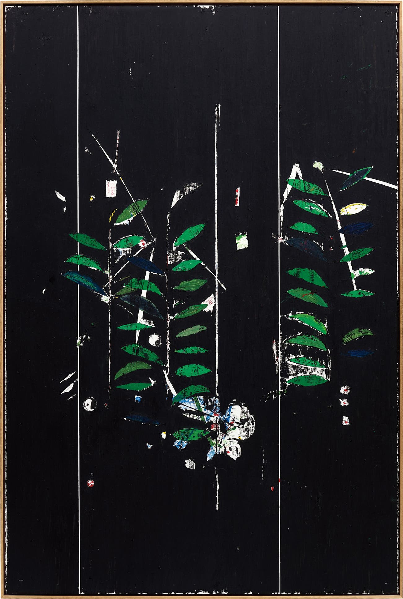 pencil, acrylic, tape and oil stick on paper laid on board, in artist's frame