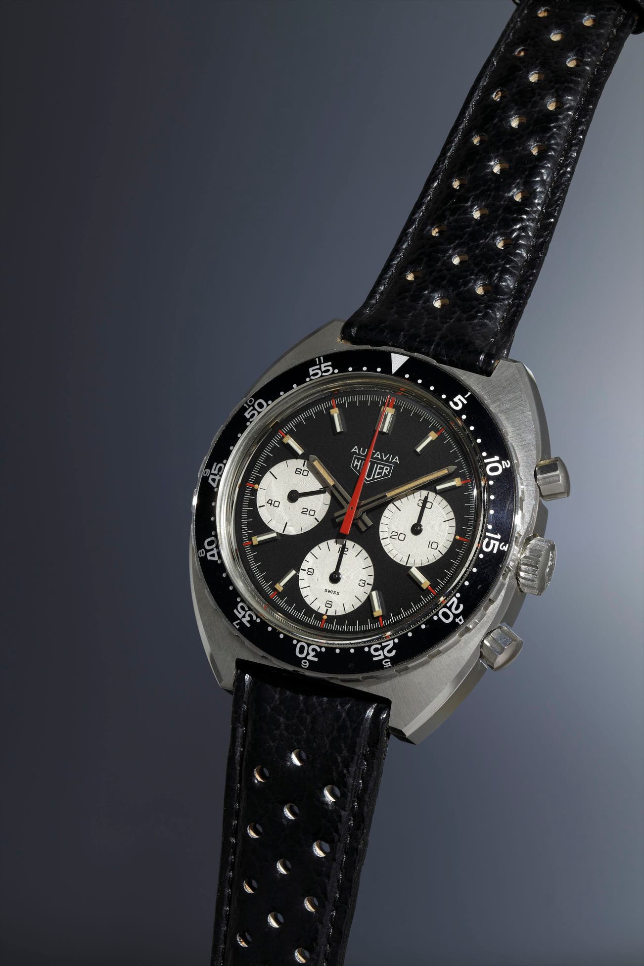 The manually-wound Heuer Autavia reference 73663 timepiece was introduced in the early 1970s, with a classic, three-register dial layout as the originals from the 1960s, but housed in a more substantial case measuring 42 mm in diameter.