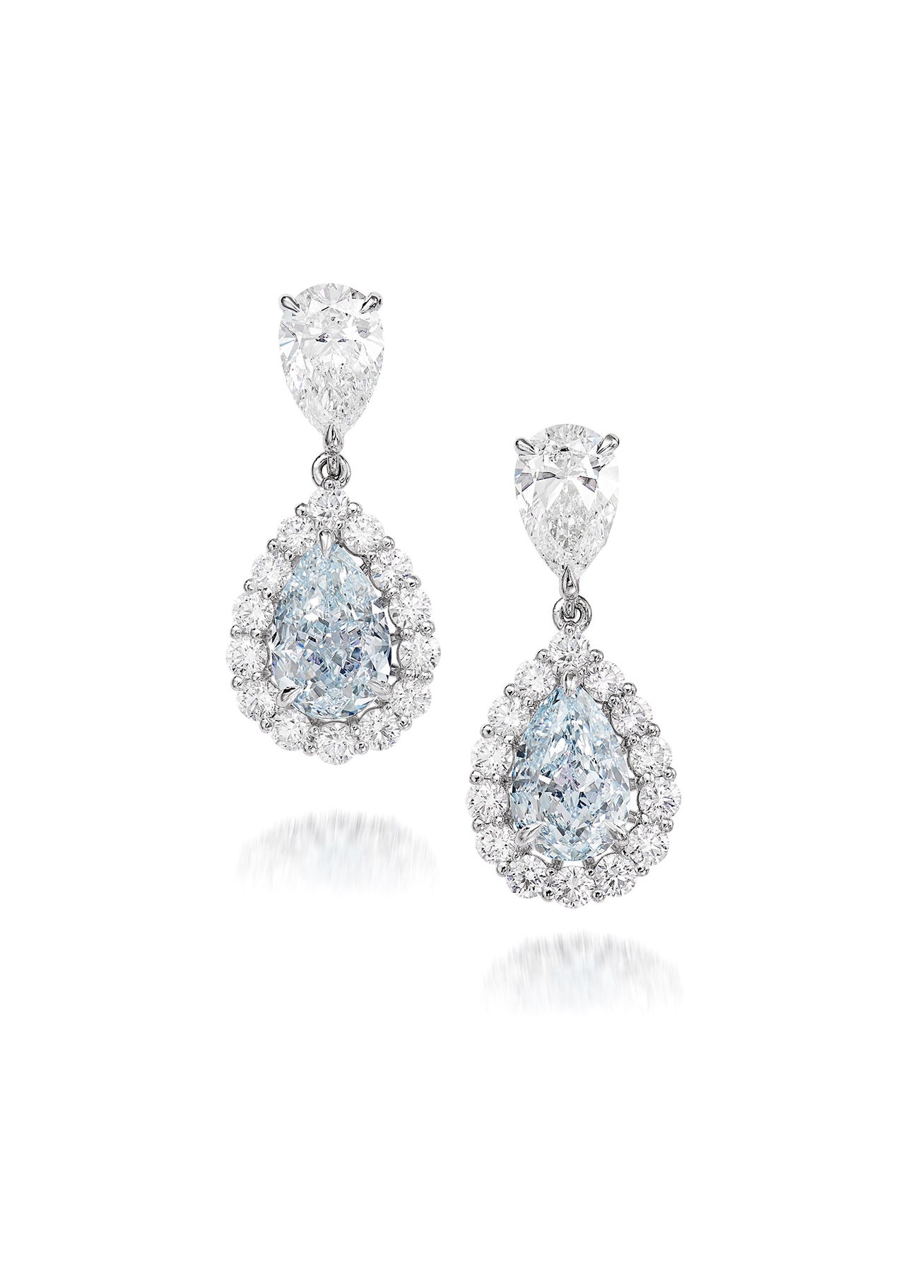 An Exceptional Pair of Fancy Blue Diamond and Diamond Earrings