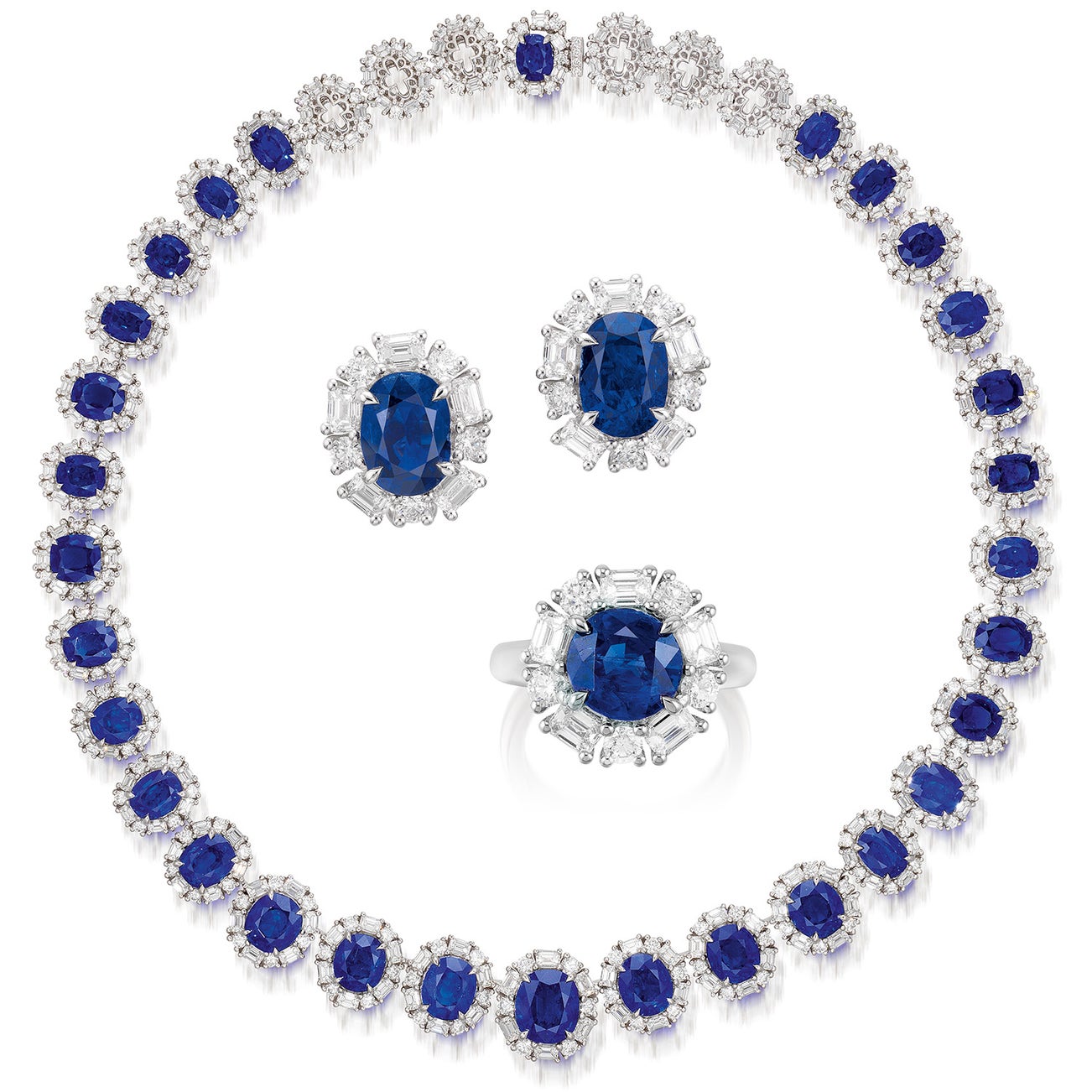 - Nineteen oval and eleven cushion-shaped sapphires, 82.73 carats total