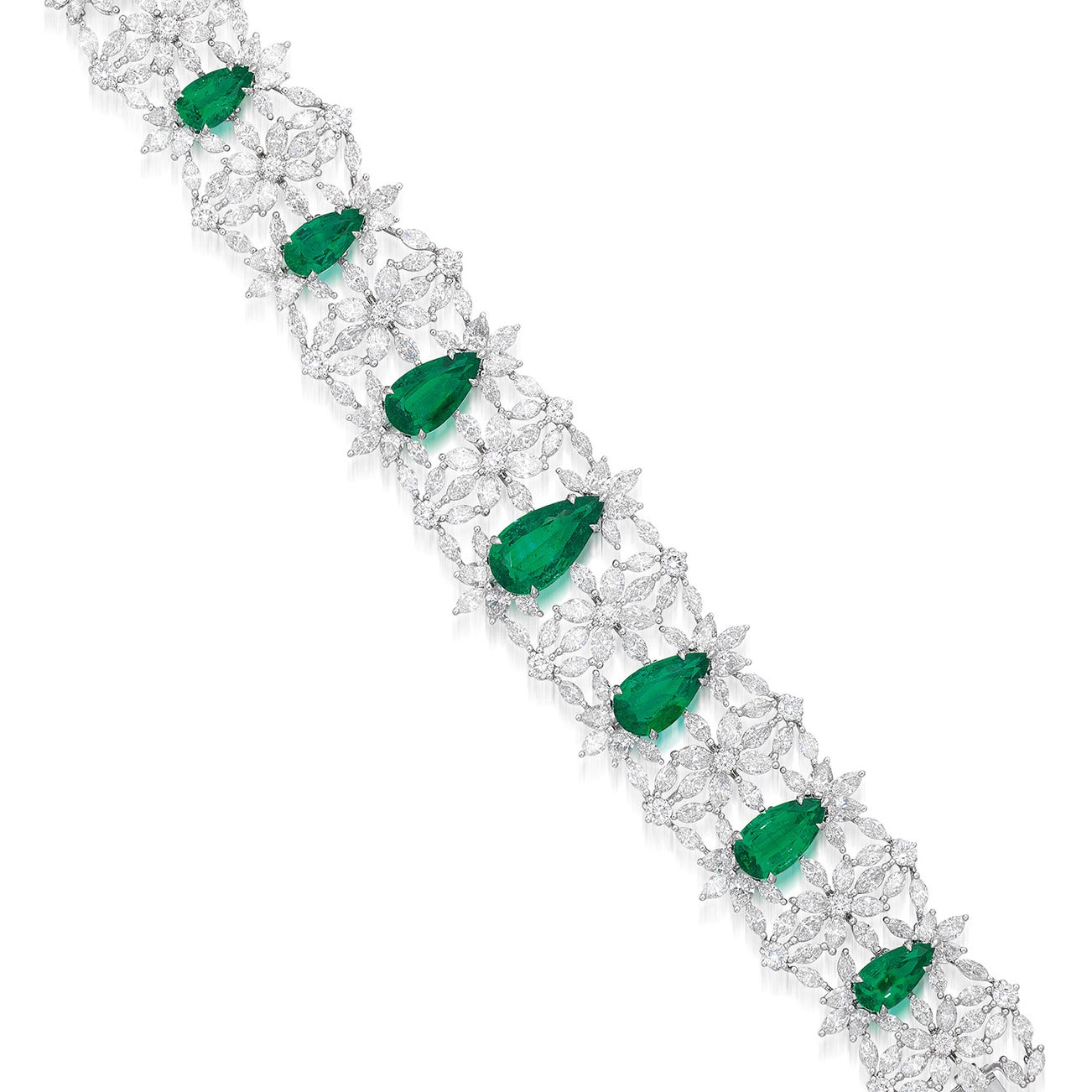 Variously cut diamonds, 22.56 carats total18K white goldSigned Hermitage<em>GRS Report: (seven emeralds tested)