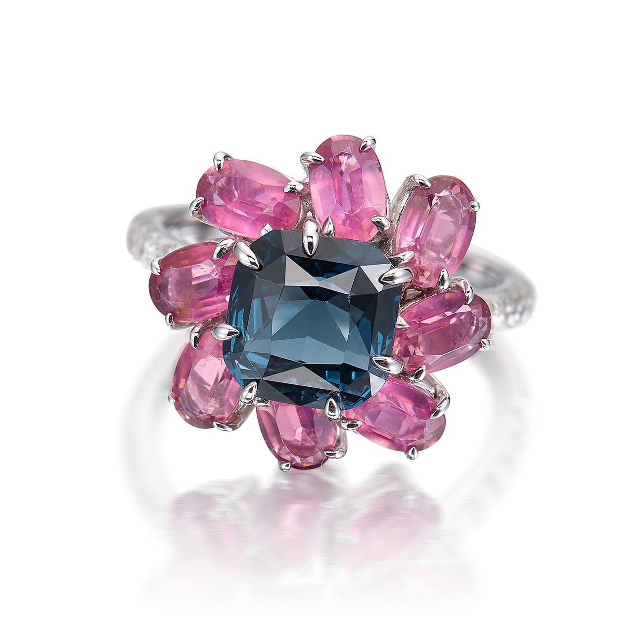 A Blue Spinel, Pink Tourmaline and Diamond Ring