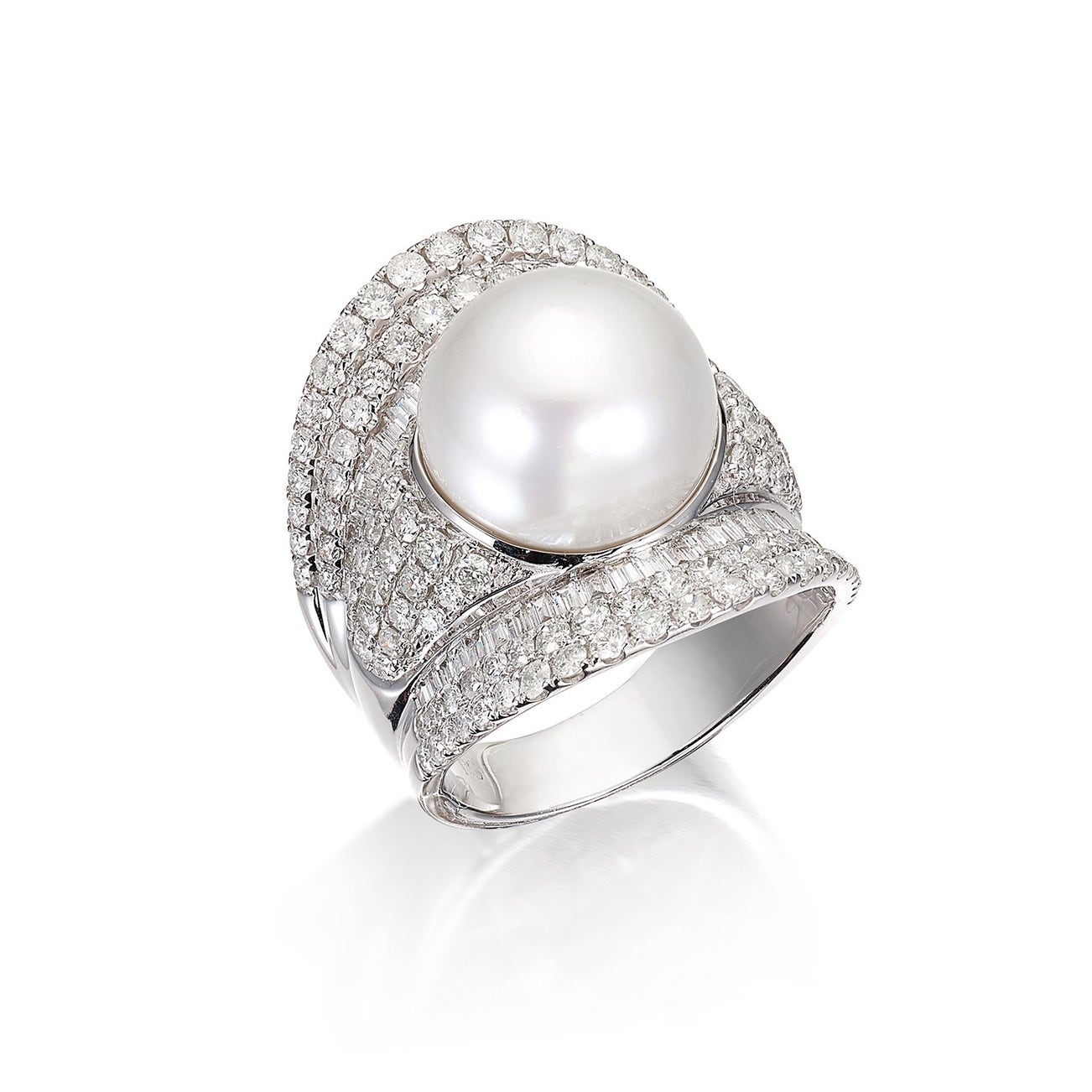 A Cultured Pearl and Diamond Ring