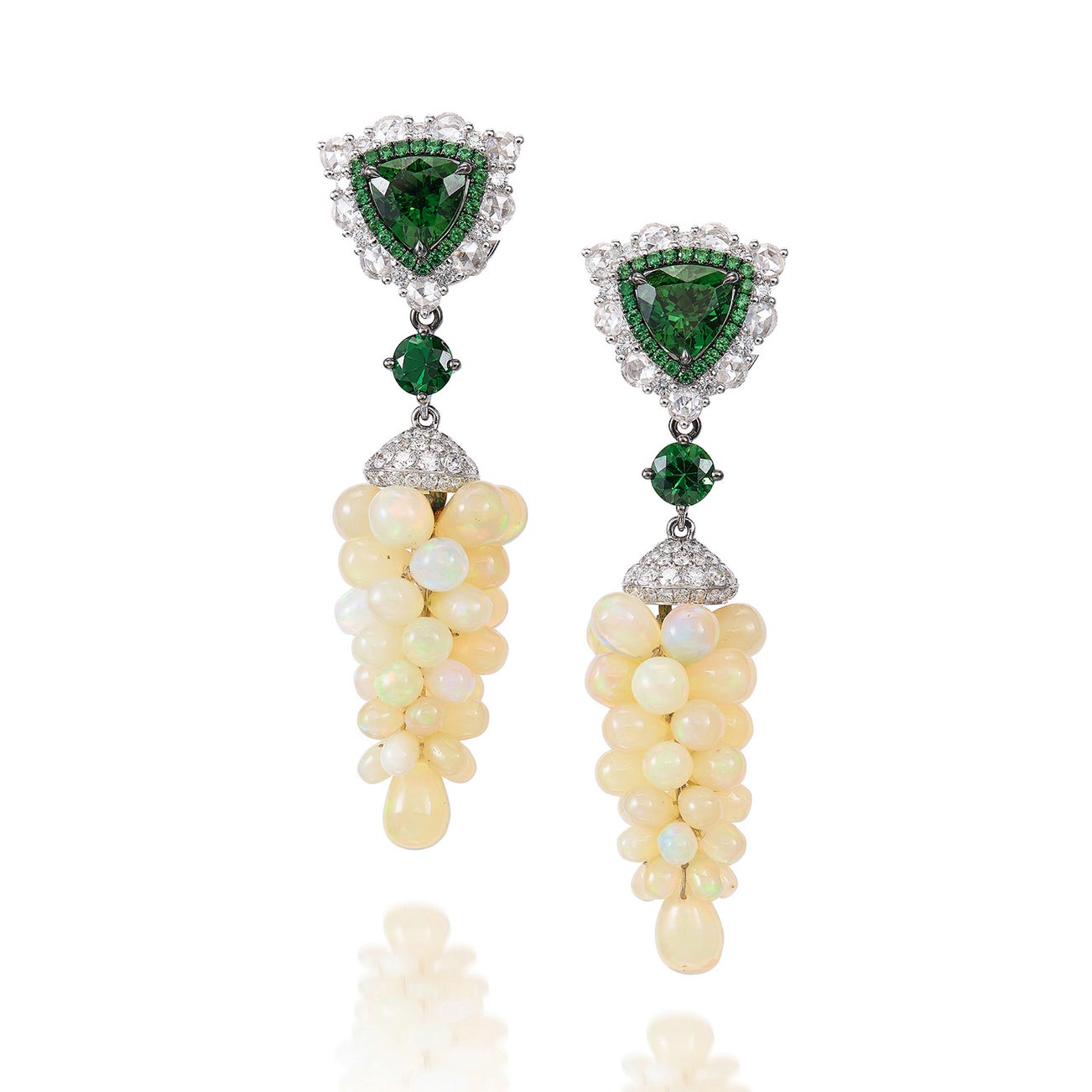 A Pair of White Opal, Tourmaline Earrings