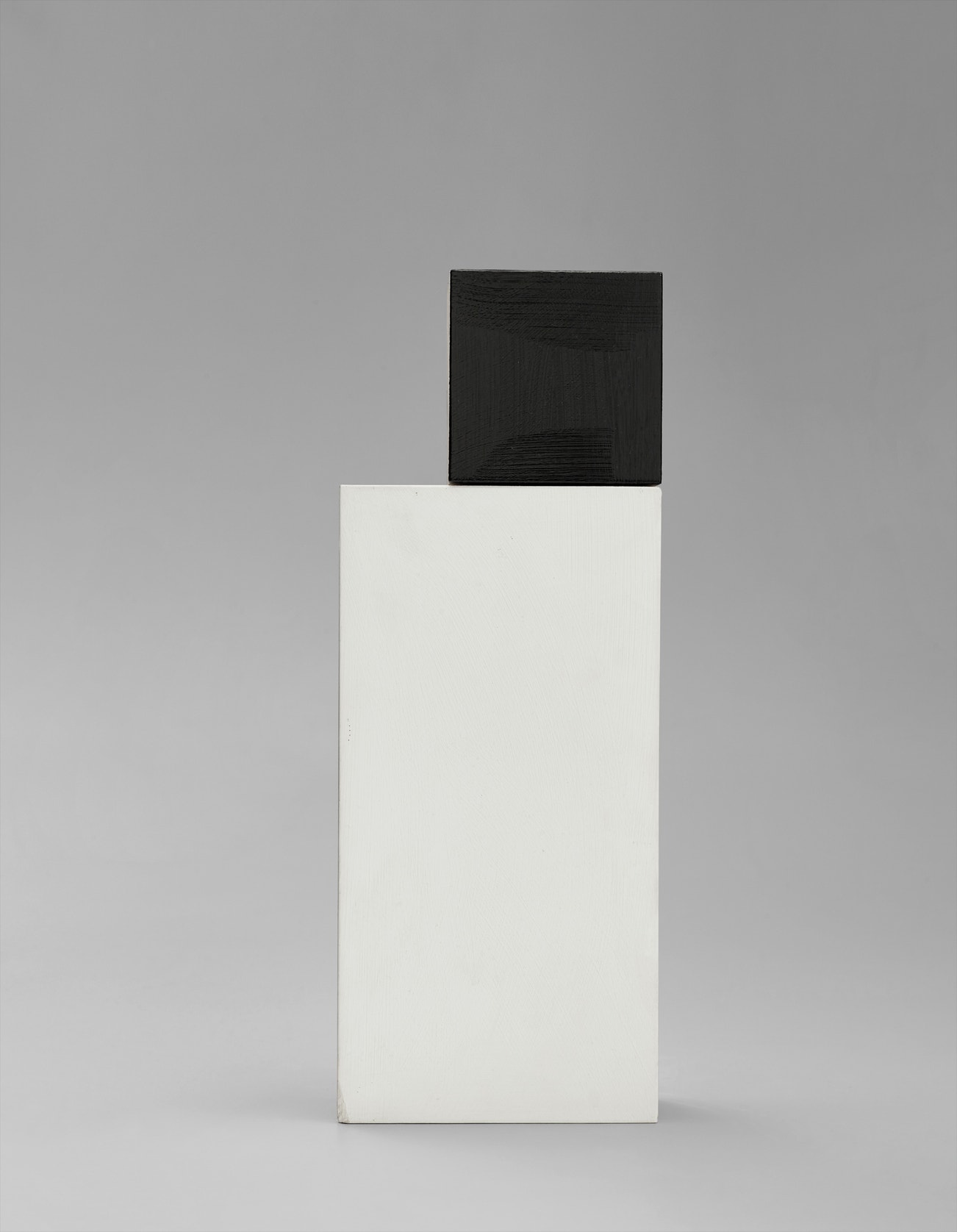 Wooden multiple in two parts mounted together, painted in black and white acrylic.