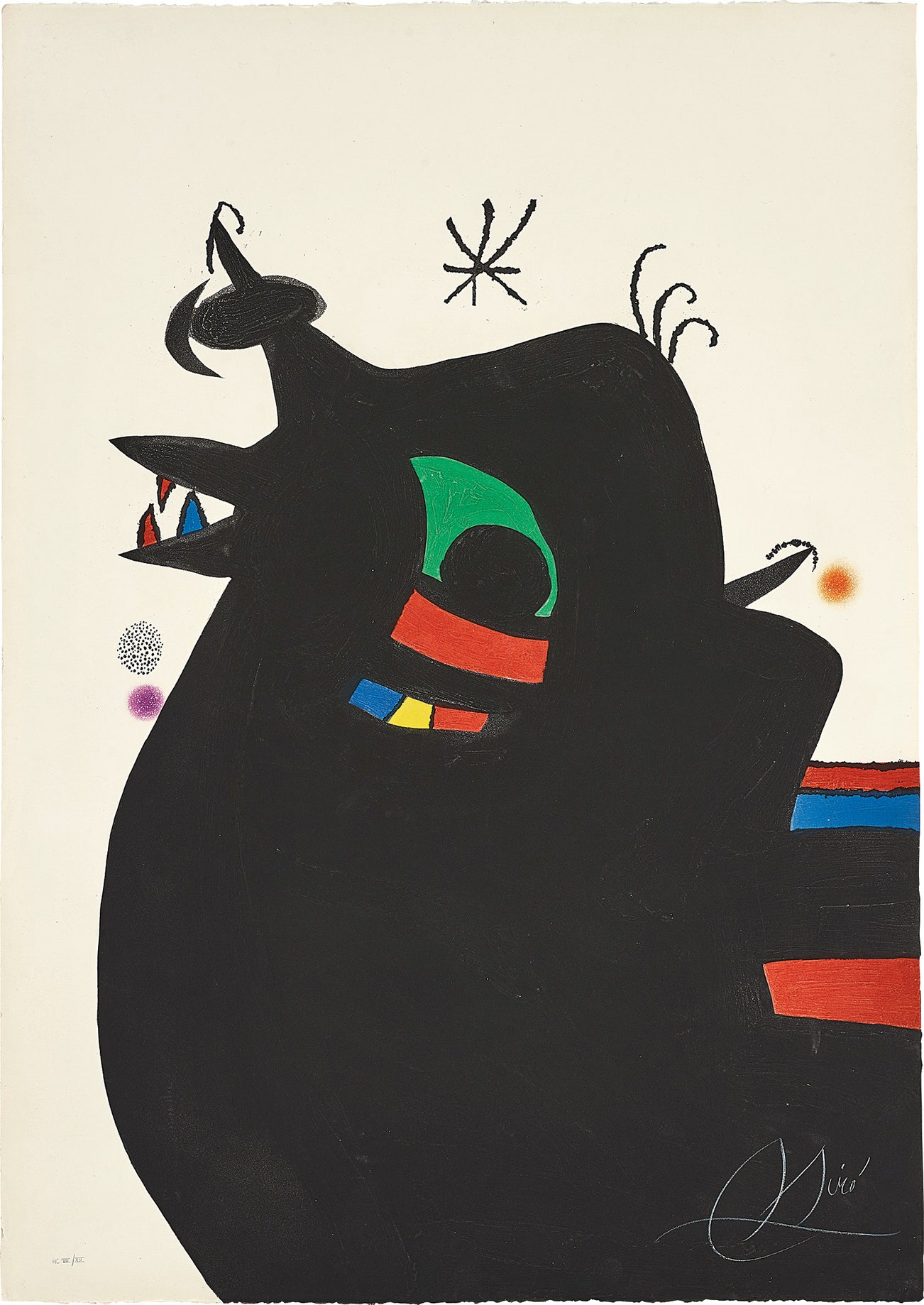 Signed in white pencil and numbered 'HC VIII/XII' in pencil (an hors commerce impression, the edition was 50), authenticated by Rosa Maria Malet, director of the Fundació Joan Miró, Barcelona on the reverse and dated '28/IV/2015', published by Maeght, Paris, framed.