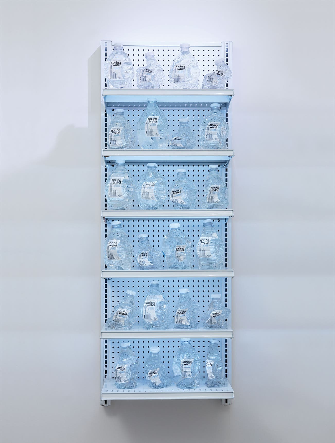 24 Duane Reade bottles boiled in their own water, plastic infused spring water and commercial metal shelving