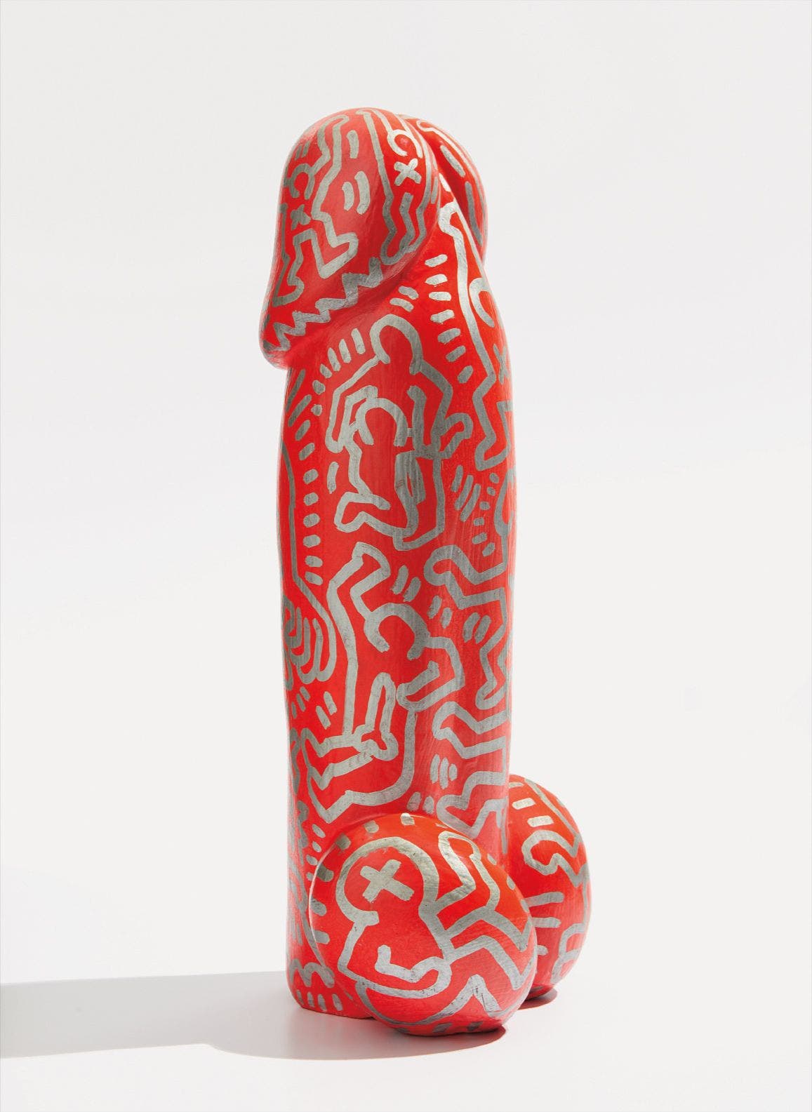 plaster phallus sculpture with paint and ink