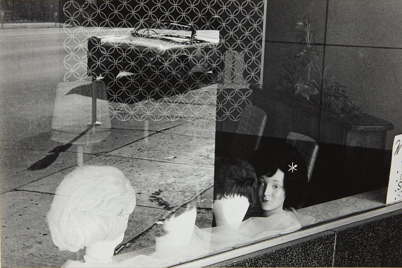 Given total freedom, Friedlander departed from the glaring commercial gaze that Warhol had so unabashedly embraced, and instead, photographed the cars the same way he photographed his shadow, camouflaged within the frame, making what should be the primary subject, only one part of the final composition. In lot 116 we see the Lincoln Continental through a reflection in a shop window, and similarly in lot 117, the Chevrolet Imperial sits outside, parked askew in the rain. “I just put the cars out in the world, instead of on a pedestal,” Friedlander later explained.