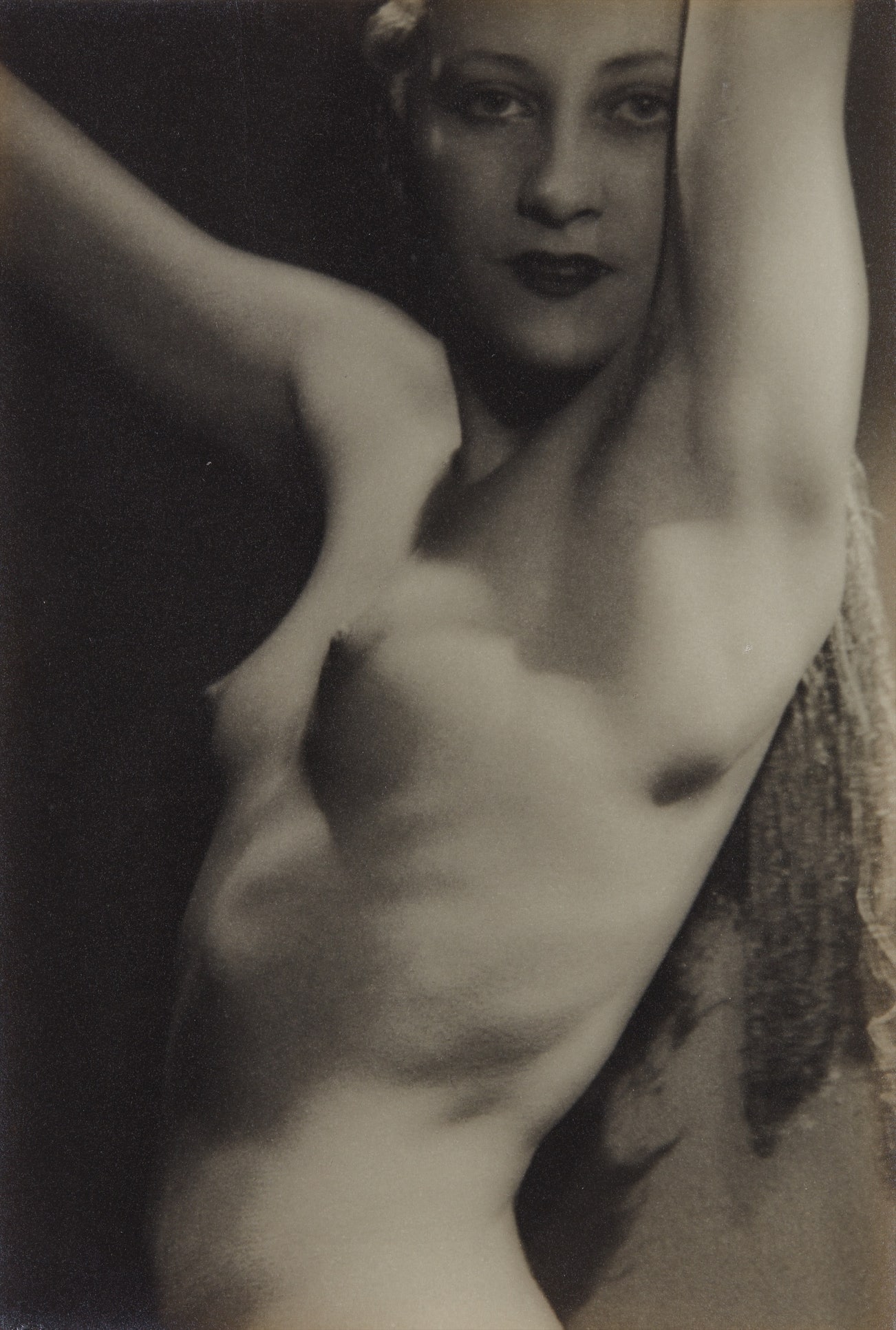 By the 1930s, nudes comprised a significant portion of Man Ray’s oeuvre, and an entire passage of Photographs by Man Ray 1920 Paris 1934 is devoted to the female form. The elegant nude offered here is at once representational and dreamlike. As in the best of Man Ray’s photographs, conventional artistic subject matter is raised to the level of Surrealism and is reflective of Man Ray’s distinctive vision. Through Man Ray’s deft use of lighting and his mastery of darkroom technique, he has created in this image a nude whose form seems poised between human flesh and sculpted stone.