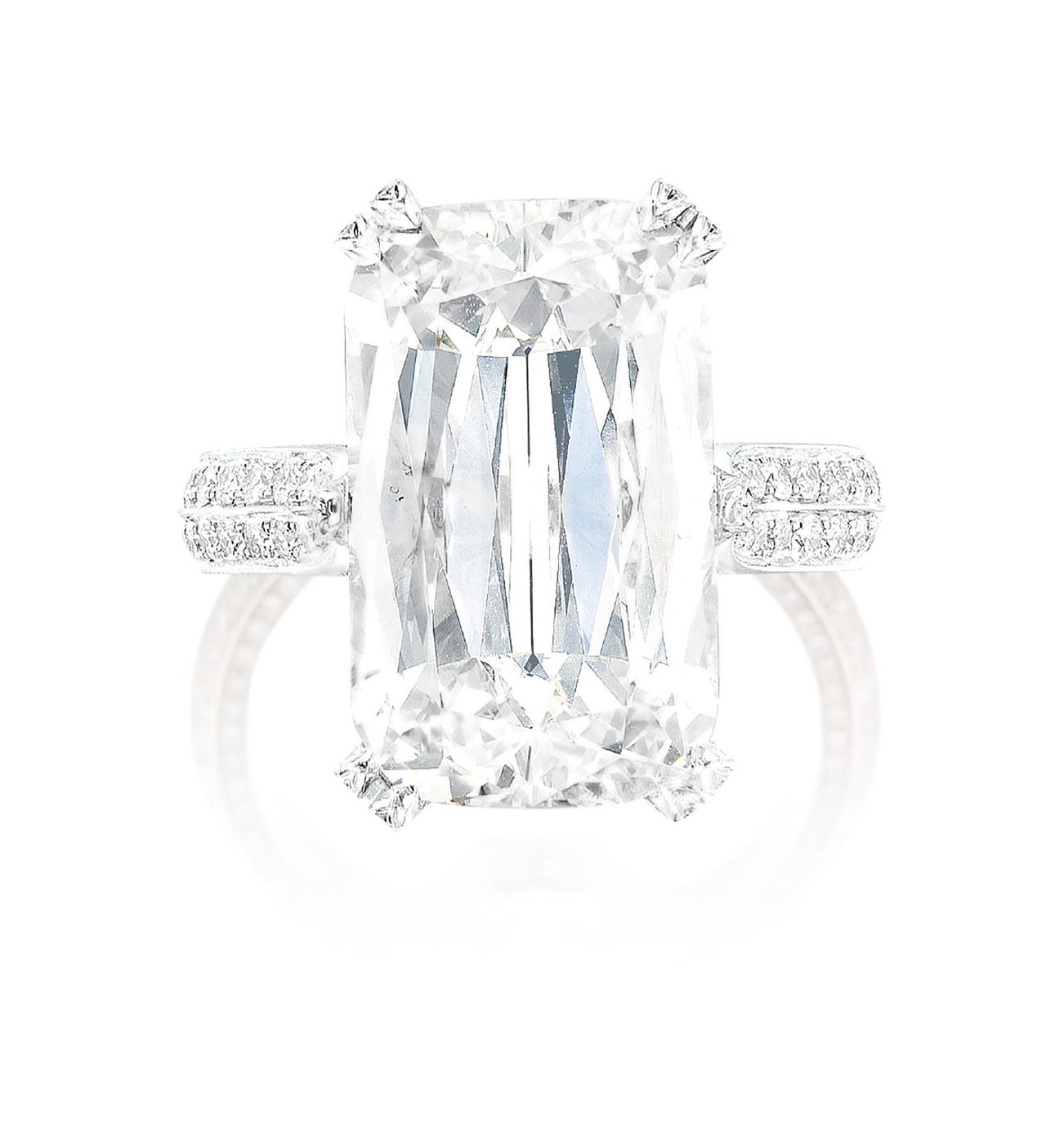 One Ashoka-cut diamond, 10.05 caratsGallery and shank set with tiny brilliant-cut diamondsPlatinum(10.05-carat Diamond)