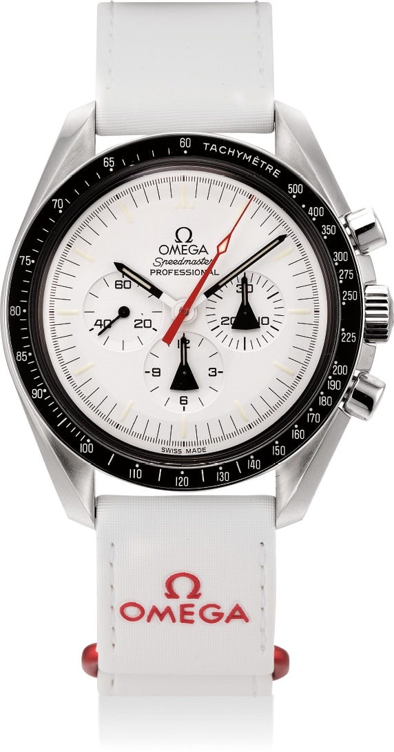 To celebrate such an important legacy, Omega released in 2008 a limited edition timepiece produced in 1970 examples, of which the present lot is number 933. The production number is a direct nod the the year the first Alaska Project produced the timepiece which inspired the present one. In fact, with the exception of minor material upgrades, the modern edition is a very faithful reproduction of the 1970 piece. The extremely unusual dial layout is the result of months of studies and tests made at the time in “space simulators” to optimize the design for space needs. The timepiece was supposed to resist to extreme conditions, including shocks, vibrations and temperature fluctuations. The additional aluminum outer case was an effort to provide further protection, and astronauts were able to choose between wearing the piece with or without it, for more casual use.