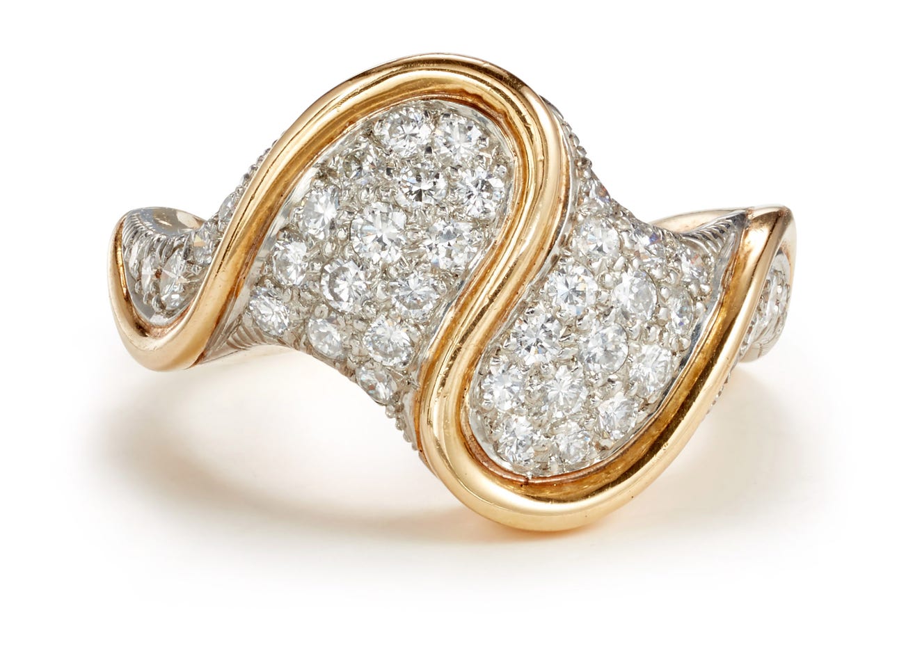 18 karat yellow gold and platinum, size 7