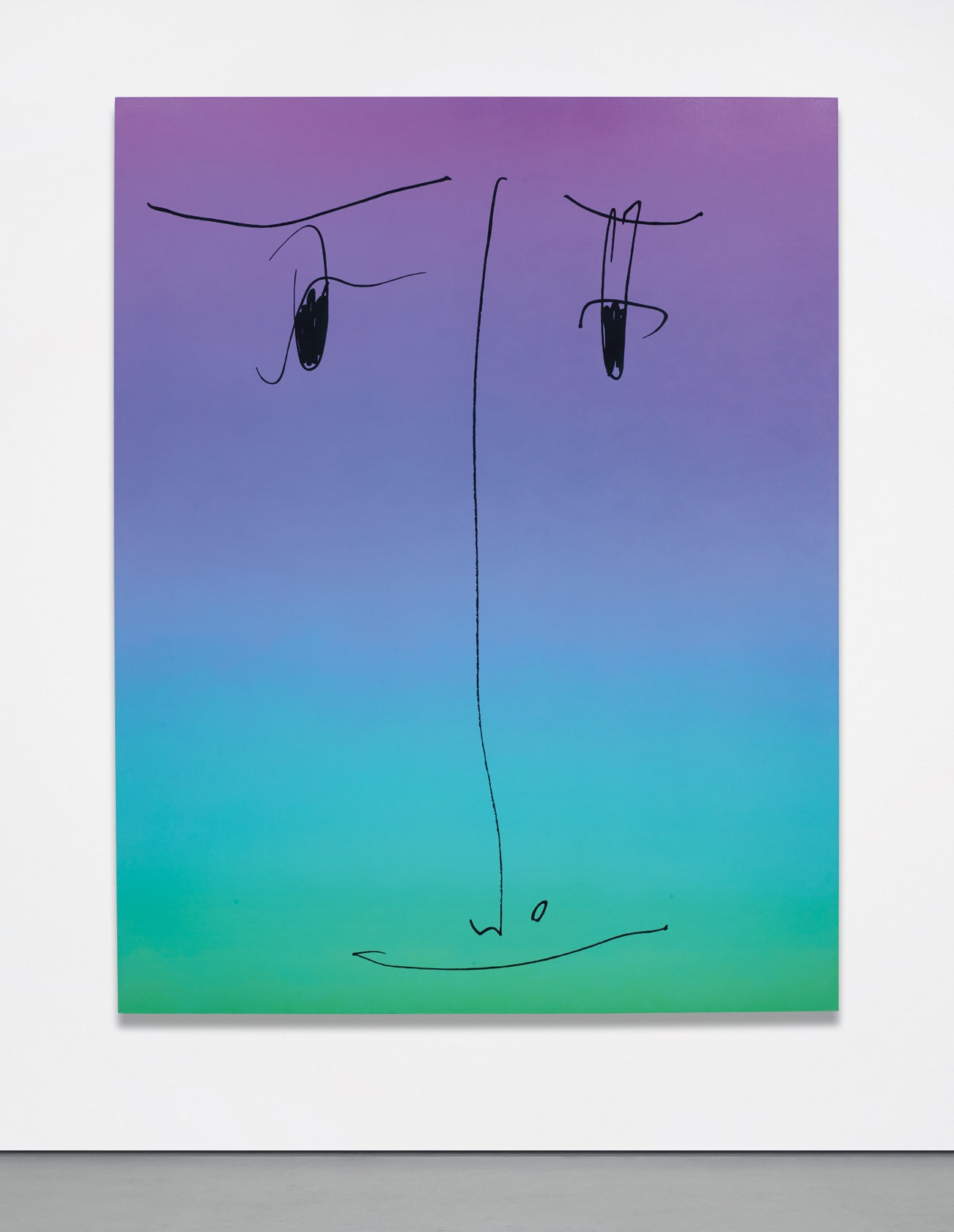 In the present lot we find him in more gentle mode. From a large series of sketchily drawn faces on a spectrum of Day-Glo backgrounds, Pruitt’s simple and expressive strokes create a visage that recalls the elegant economy of Picasso’s line drawings. ‘I love minimalism, and I also love melodrama. So with my face paintings, I combined the two. First I make a shifting colour, gradient backdrop – colour is one of the best ways to express emotion – and then I draw a face. Sometimes the lines of the face are steady and bold, sometimes they skip and falter. I just go with my emotions, which are always changing. What results, whether the simple lines of a smiling face over a pastel blush, or a sorrowful cry dashed over a range of fiery reds, really paints a story, not just a picture.’ (Rob Pruitt in Faces, People and Pandas, exh. cat., Milan: Massimo de Carlo, 2012).