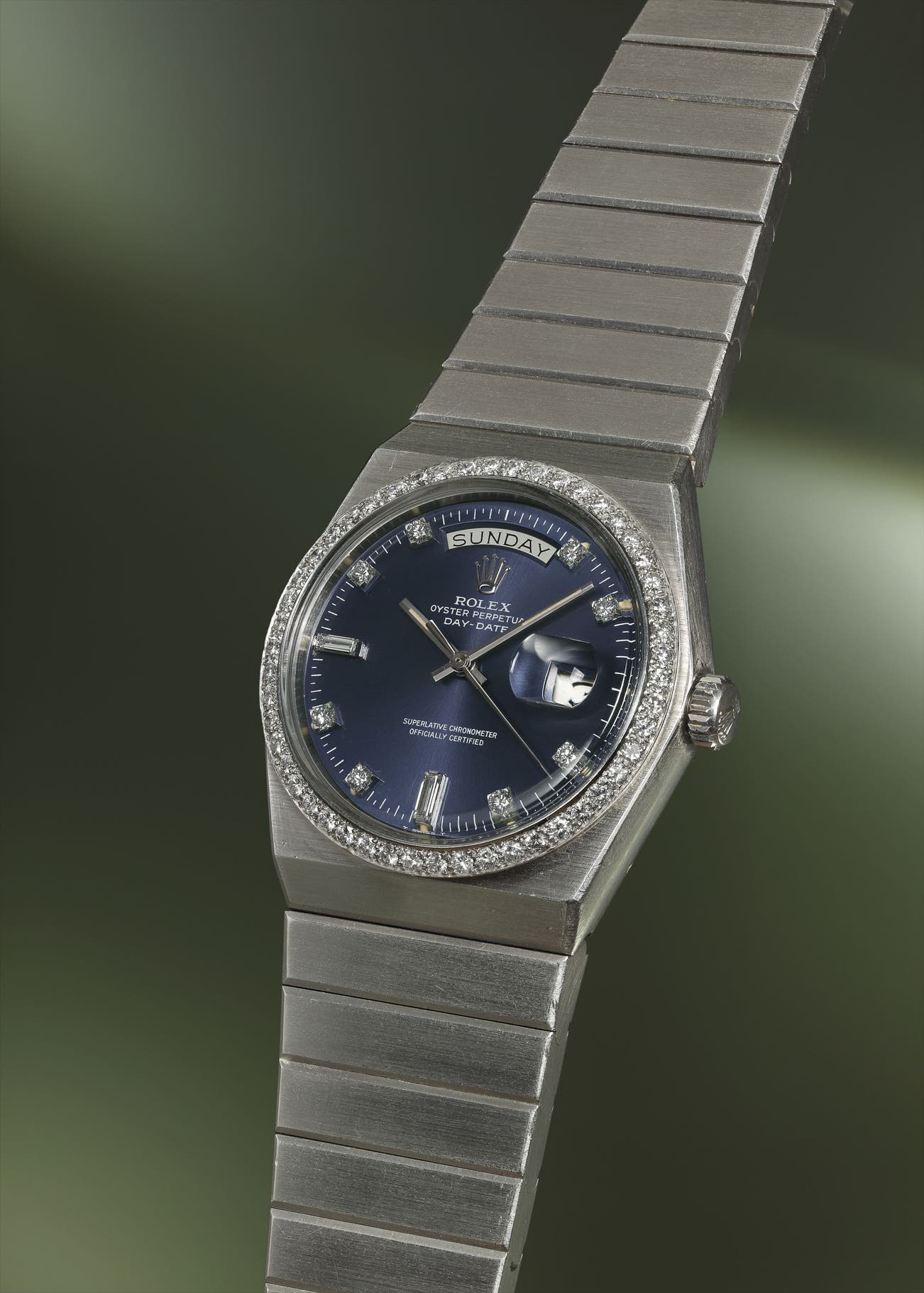 This watch fulfills every description of a superlative Day-Date: majestic, exclusive and incredibly precious. Reference 1831 is particularly unique as it merges the OysterQuartz case with the King Midas style bracelet. This unusual combination is really extraordinary, and displays Rolex’s strength in designing a spectrum of watches, from practical tool watches, all the way to luxurious masterpieces for royalty.