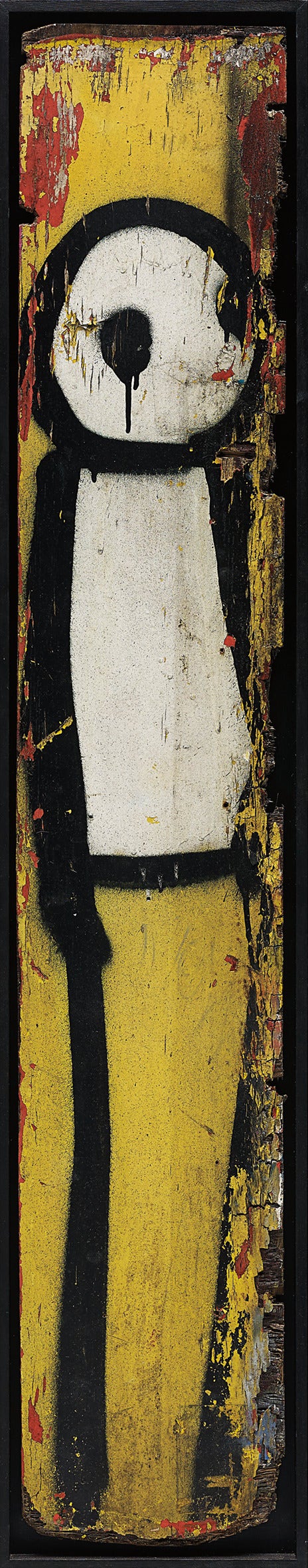 spray paint on wood, in artist's frame