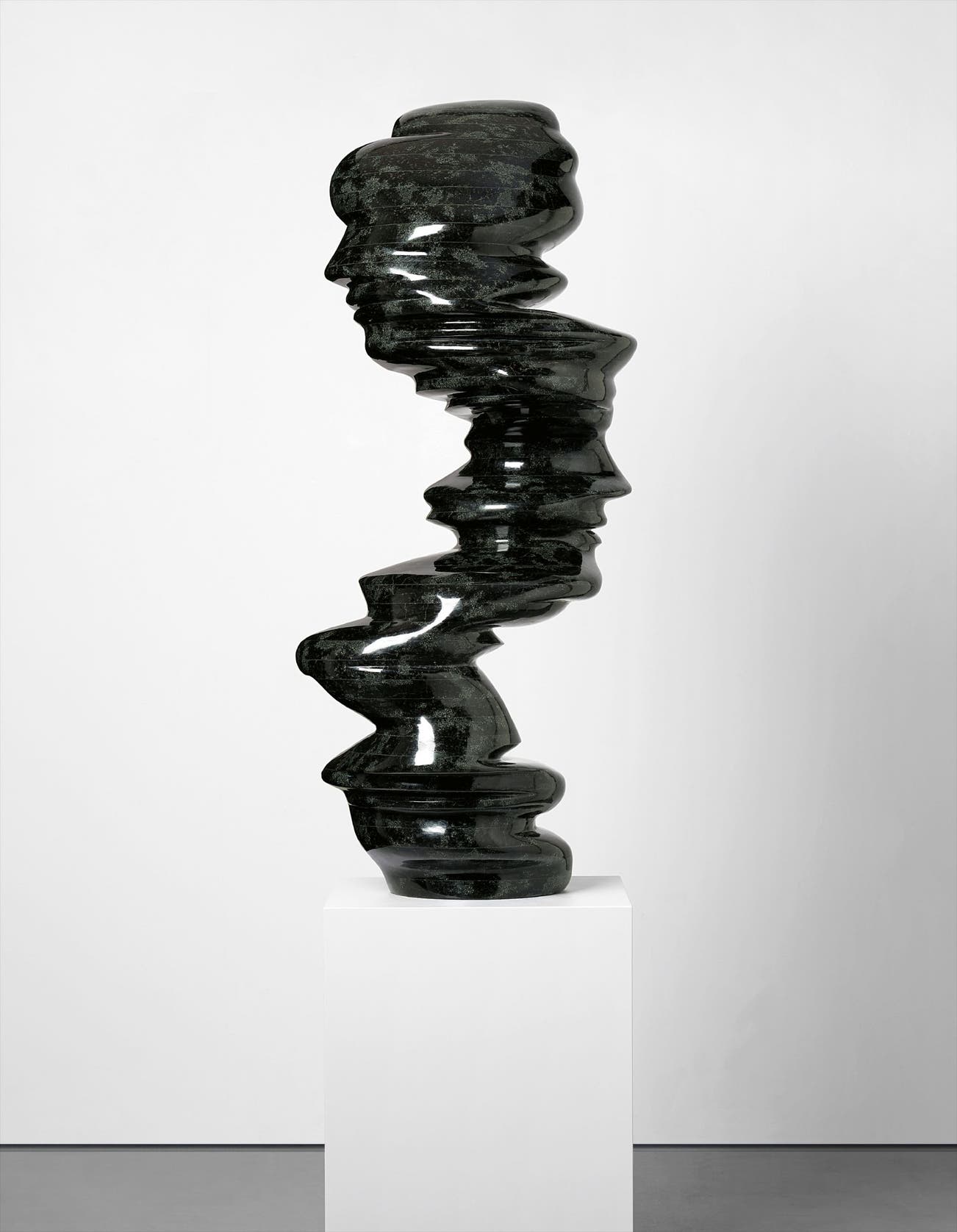 Twisting from its core, Tony Cragg’s poetic Black Diabas is a pivotal sculpture belonging to the species that the artist refers to as his Rational Beings. This monumental series originating from the 1990s, is a group of organic abstract forms which evolve from drawings and are executed in a range of materials. The kinetic whirling forms of Black Diabas transgress multiple dimensions and challenge the limits of physical space. Articulated columns, combine the organic with the dynamic; profiles emerge and disappear, confronting the question of how man interacts with his surroundings. Suggestive of human form and the geometries within it, the Black Diabas is biotoc, reflecting the human cells, molecules and bone structures, which for the artist ‘will always be a preoccupation’ (Tony Cragg, ‘The Articulated Column Continued’, Tony Cragg: In and Out of Material, Cologne, 2006, pp. 23-4). Like an alchemist, Cragg breathes life into the form, his visual language transmuting static matter into animated shapes.