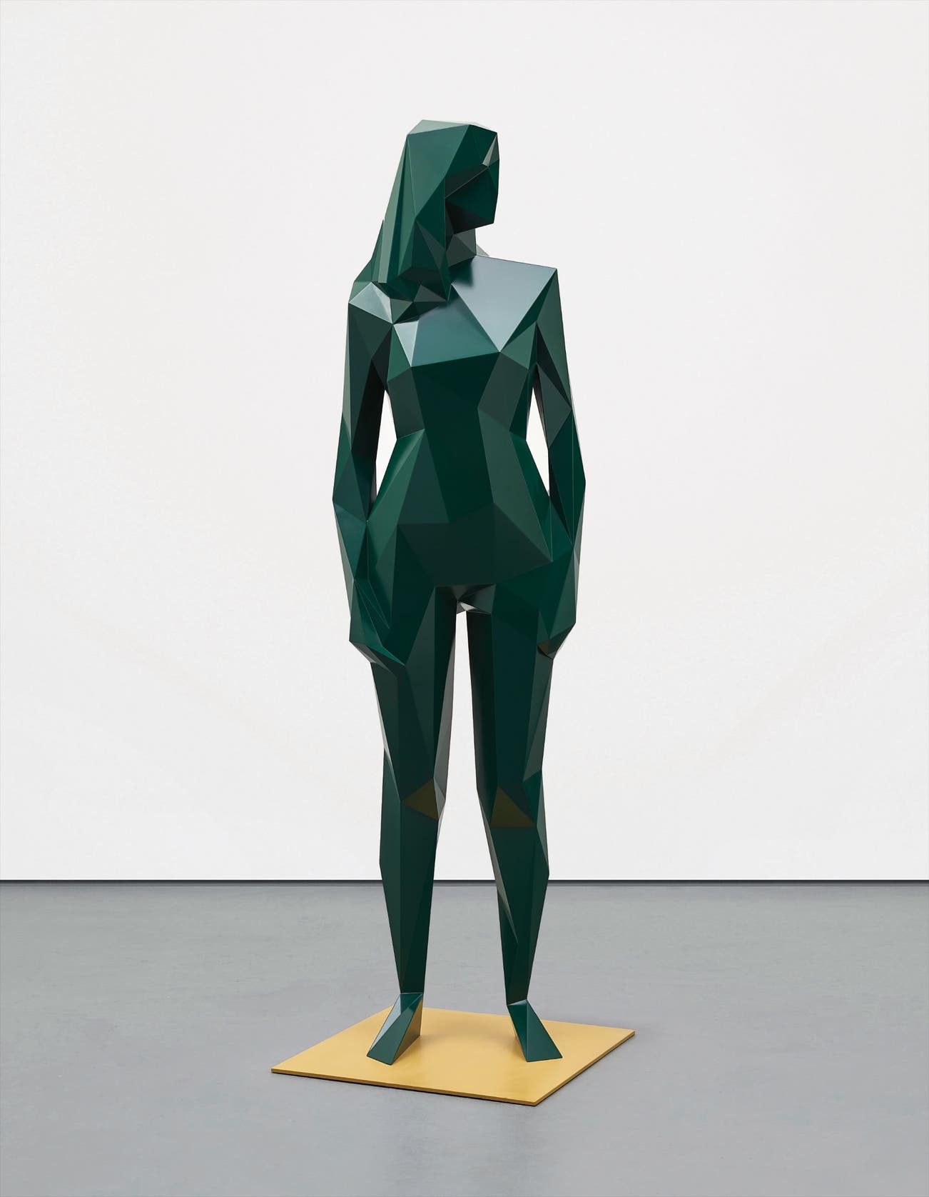 Drawn into geometric abstraction, Xavier Veilhan’s Debora, 2001 depicts a futuristic and post-human female nude. Stripped of superfluous detail, her stance is powerful, her poise elegant. Conveying strength, sensuality and grace, the exquisite sculpture, cast in resin and painted emerald green, empowers the female body while evocatively mimicking the aesthetic of digitally rendered images. As such, Debora critically addresses the ways in which digital technologies and the post-Internet age have altered our perception of the world.