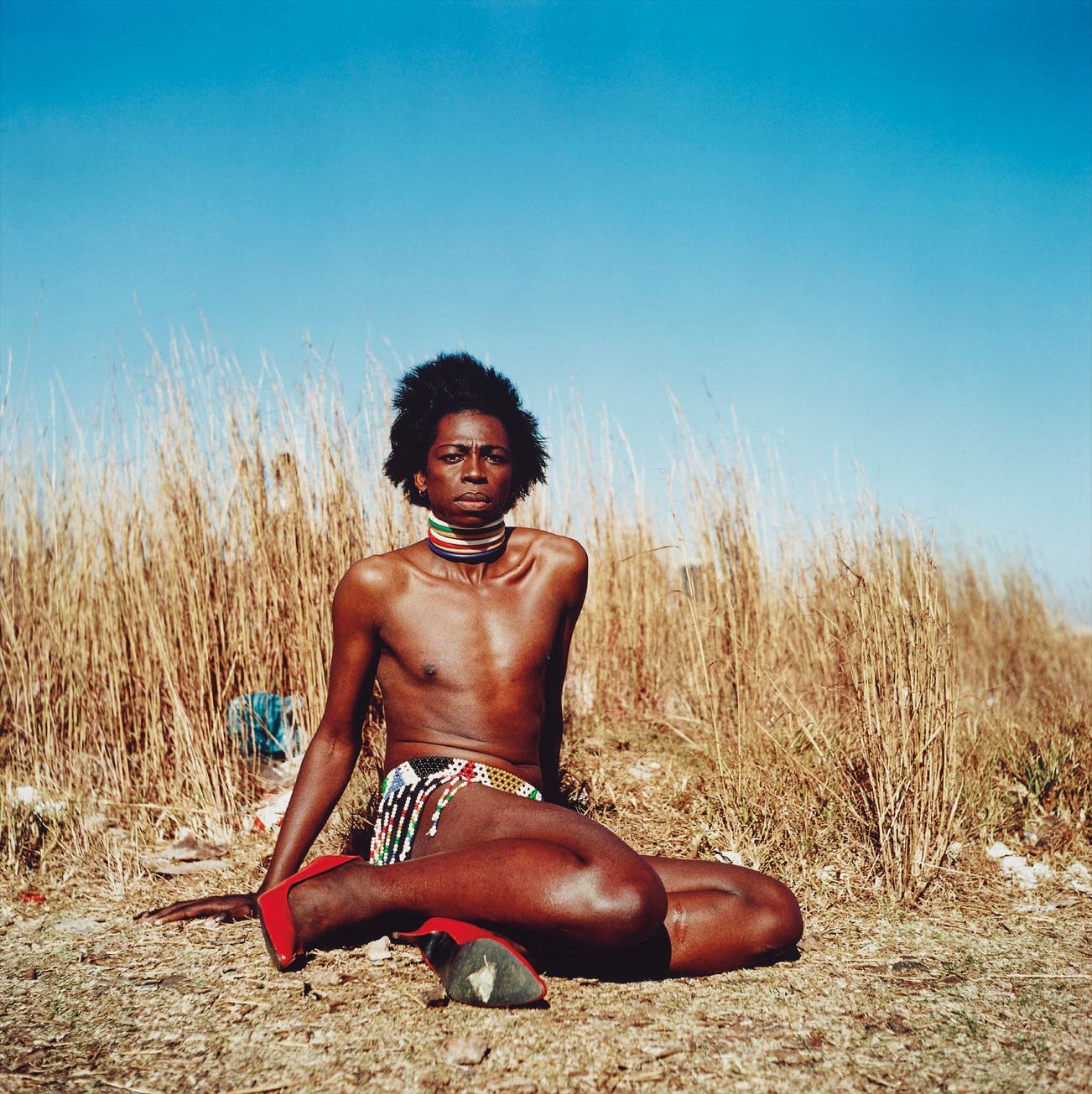 Zanele Muholi, who terms herself a visual activist, focuses her work around South Africa’s queer community of which she is a part. The current lot is from a group of portraits Muholi took of the drag queen Miss D’vine. Here, Miss D’vine is wearing traditional South African garb – a choice of costume intended to subvert traditional notions of gender. ‘I give young black queens and drag artists a visual voice in the cultural landscape of post-apartheid South Africa,’ Muholi explains. ‘These photographs examine how gender-queer identities and bodies are shaped by – but also resist, through their very existence – dominant notions of what it means to be black and feminine.’