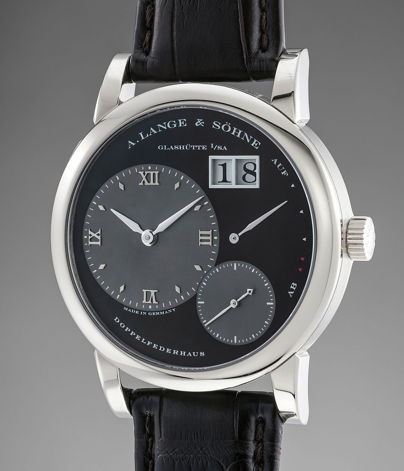 The present model is a limited edition of only 30 pieces specially made for the Italian retailer Hausmann & Co. In 2008, the retailer commissioned the brand to produce a distinctive Lange 1 that watch collectors would only be able to purchase at their boutiques. The brand created this superb white gold piece, featuring a galvanic black dial with grey subdials. This type of bicolor dial had only be seen on the Grande Lange 1 but never before on a classic Lange 1. The watch was delivered with two casebacks: a regular sapphire one bearing the retailer's initials and another, extremely rare closed gold caseback signed with the retailer’s full name. The first Lange 1 model launched by the company had a plain caseback until Walter Lange realized that it was a shame to hide such an amazing hand finished movement and decided that all his future creations would be with a see-through caseback. Bearing the lucky number 8, and offered in excellent condition with all its accessories, this watch would be a great addition as a daily versatile watch.