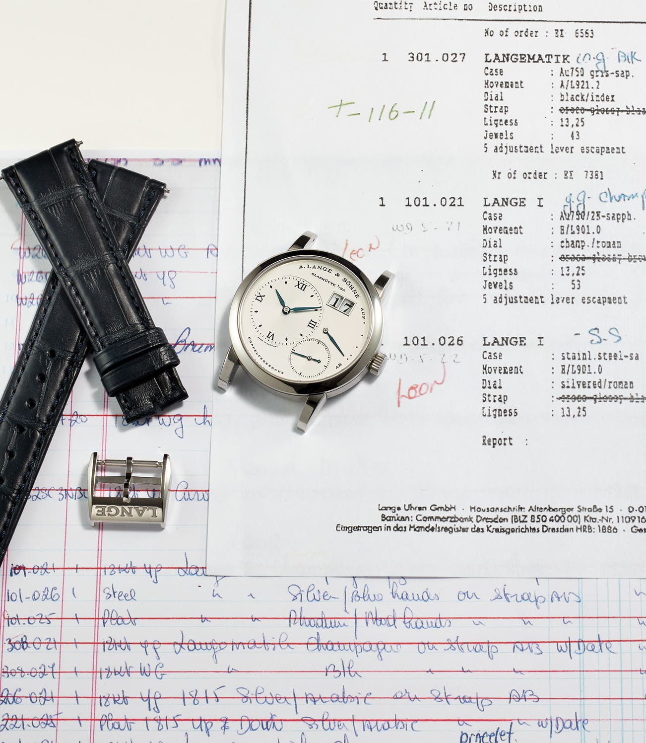 On the brink of Y2K, Cellini Jewelers President Leon Adams received an invoice from A. Lange & Söhne, wherein he accepted delivery of three A. Lange & Söhne watches, including a stainless steel Lange 1 reference 101.026 bearing the case number 117’955, for the price of 8,831 EUR. The year 1999, incidentally, was the first year of the Euro, explaining why the ledger also lists the price in Deutsche marks. For the next 20 years it sat – untouched, undisturbed – in a Cellini inventory drawer. The Lange One in stainless steel was never offered in a catalogue and the manufacture has never confirmed the exact number of stainless steel examples produced. Experts’ estimate that approximately 30 were made in total. Of those thirty, about eight have appeared publicly at auction. Of those appearing at public auction, our research shows that they all bear unique case numbers – they were never re-sold or traded publicly after showing up at auction. The history of this watch is a testament to their long-lasting appeal and Spartan beauty.