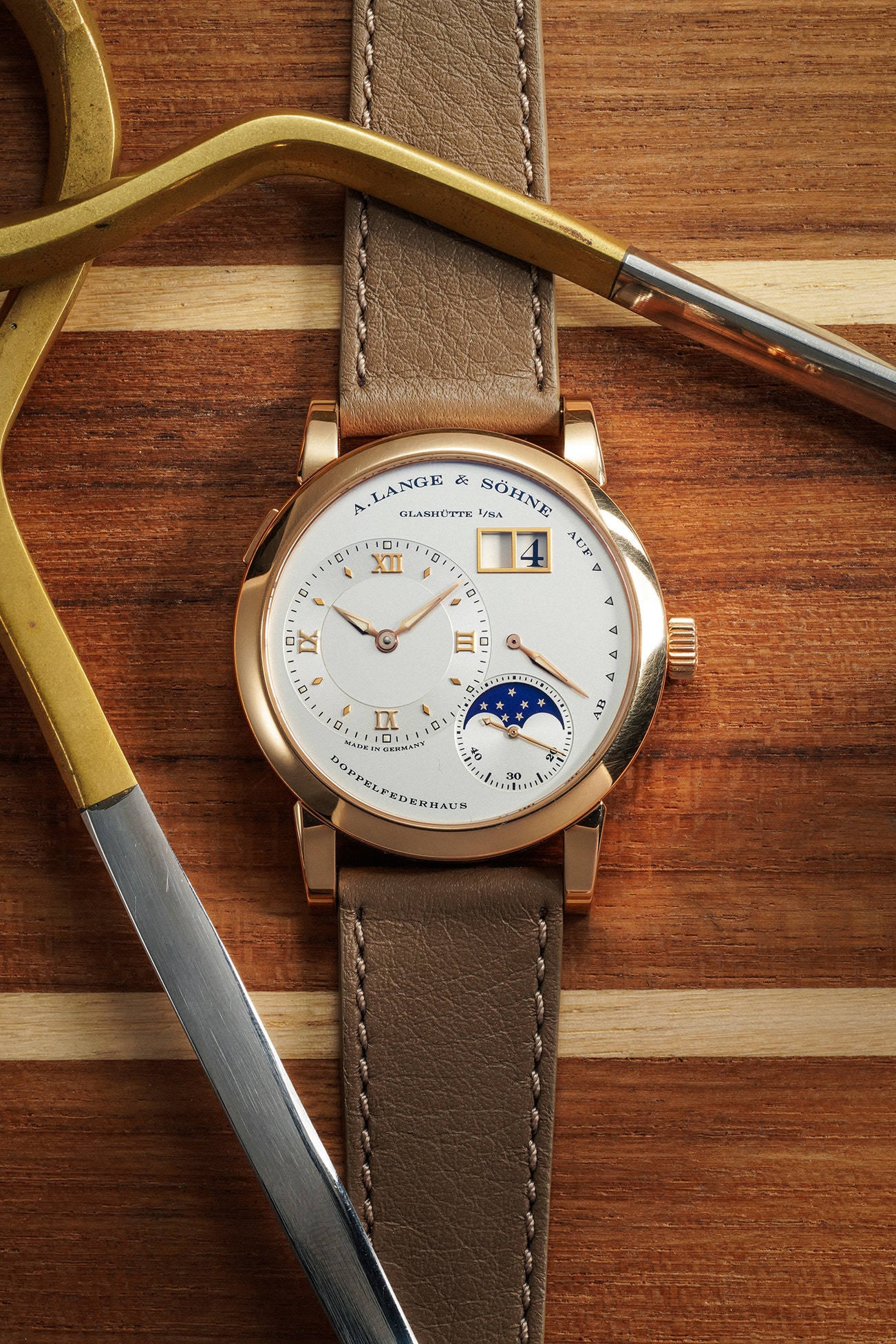 -At the heart of this masterpiece is the in-house calibre L901.5, a manually wound movement showcasing A. Lange & Söhne’s signature three-quarter plate made of untreated German silver, blued screws, and a hand-engraved balance cock. This movement provides a power reserve of 72 hours, ensuring reliability and performance. The Lange 1 Moon phase 109.032 is not just a timepiece but a statement of refined taste and mechanical artistry, making it a prized possession for discerning collectors and connoisseurs of haute horlogerie.